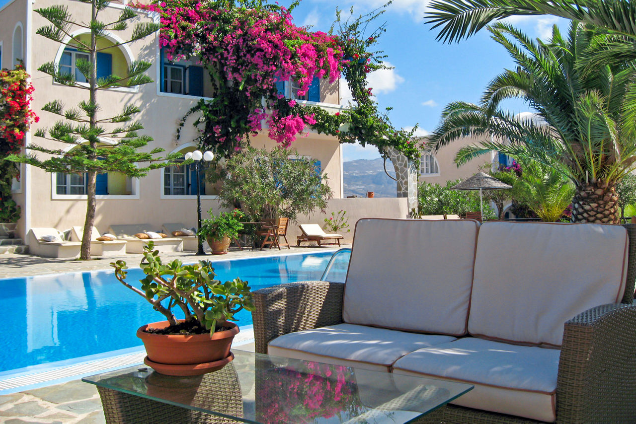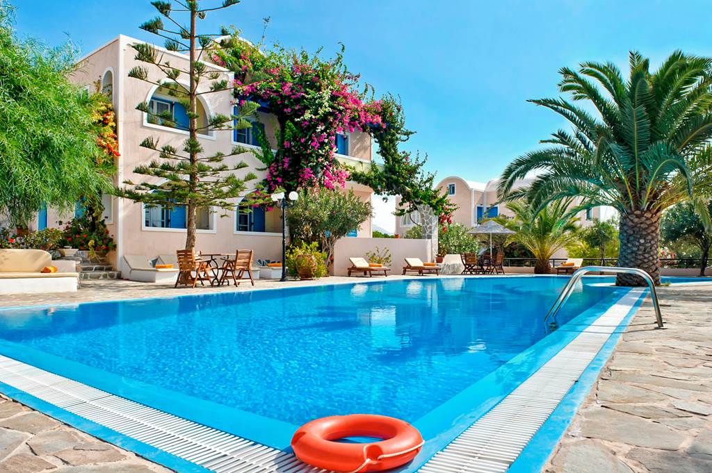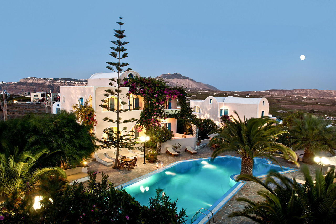 Looking for great value in the centre of a traditional village in Santorini? Look no further than Paradise Resort Santorini. Cycladic-designed buildings showcase traditional décor and are surrounded by pretty greenery. Within walking distance is Akrotiri, one of the worlds best pre-historic towns and the famous red beach of Akrotiri. On-site, you can expect cozy rooms, and a peaceful pool area complemented by a restaurant. If it’s a relaxing base you’re wanting to discover this beautiful island from, this is a great choice.