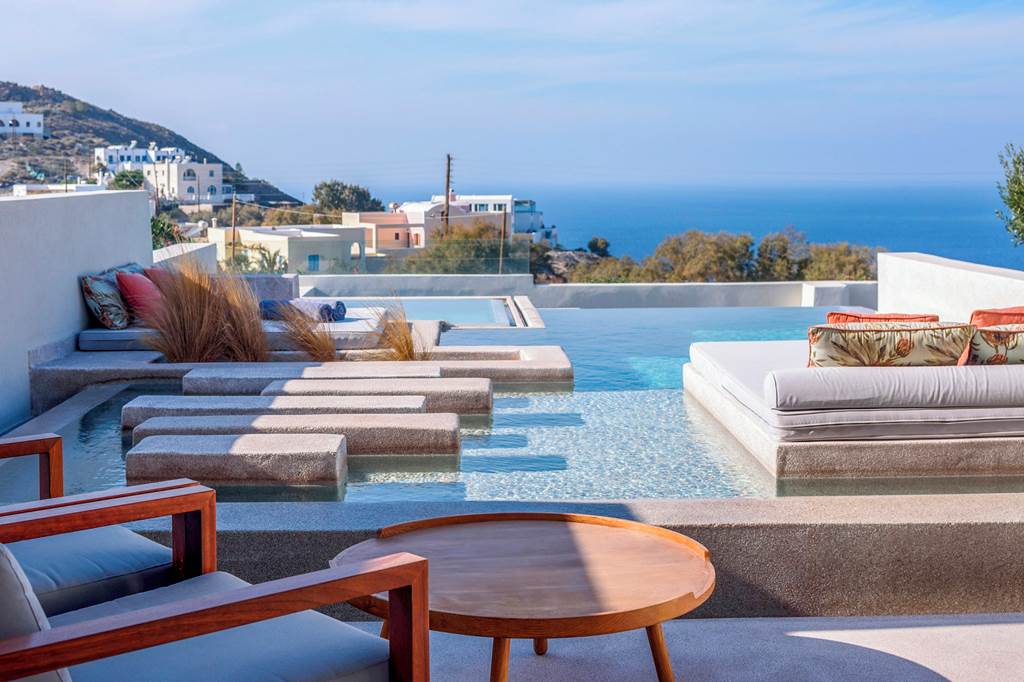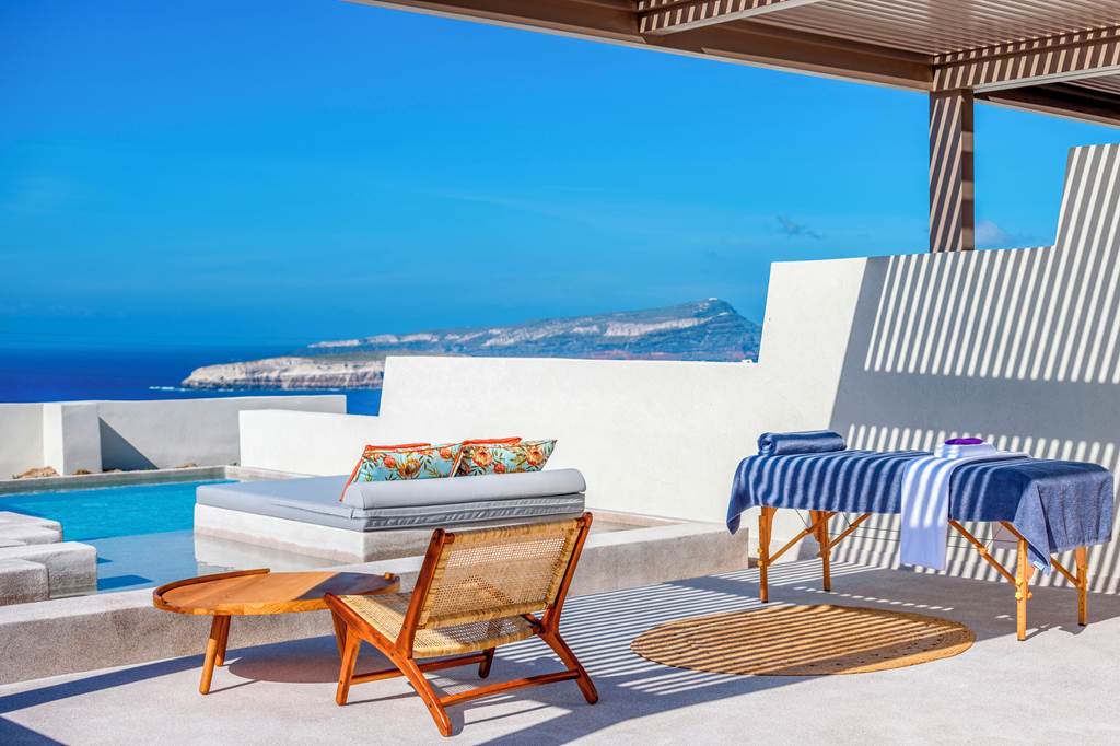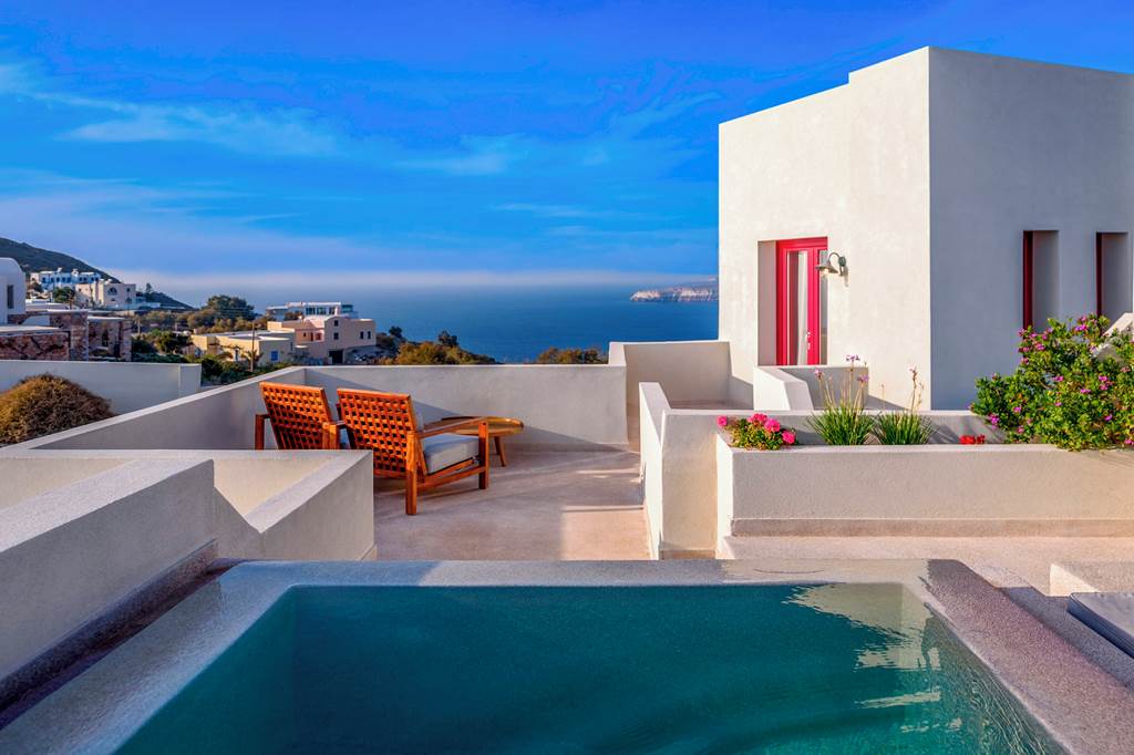 Positioned on a hilltop; in a secluded spot a short drive away from Akrotiri, you’ll find Potnia Theron Suites. The epitome of a boutique hotel, each of the six suites have been thoughtfully designed with nods to the beauty of the island in the décor, and all feature a whirlpool or private pool – some even have both, just take your pick while booking your holiday. Whichever suite you stay in, you can expect breathtaking caldera views in abundance. Although it may be tempting to laze all your days away in the calm of your suite; make the most of the included car hire and discover the sights of Santorini, you’ve got Akrotiri lighthouse a couple of minutes’ drive away, and the capital Fira around 30 minutes away. If you’re an explorer wanting a plush place to stay, Potnia Theron Suites promises an unforgettable Santorini experience.