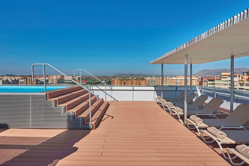 The NH Alicante is a contemporary hotel in a quiet, residential neighbourhood, offering a peaceful stay with the vibrant city centre only a short distance away. The guestrooms are bright and comfortable, complemented by top-notch amenities such as a rooftop pool and terrace, fully equipped gym, rejuvenating whirlpool, and soothing sauna. The hotel promises a perfect blend of relaxation and sophistication for guests seeking a stylish retreat just moments away from the heart of the city.