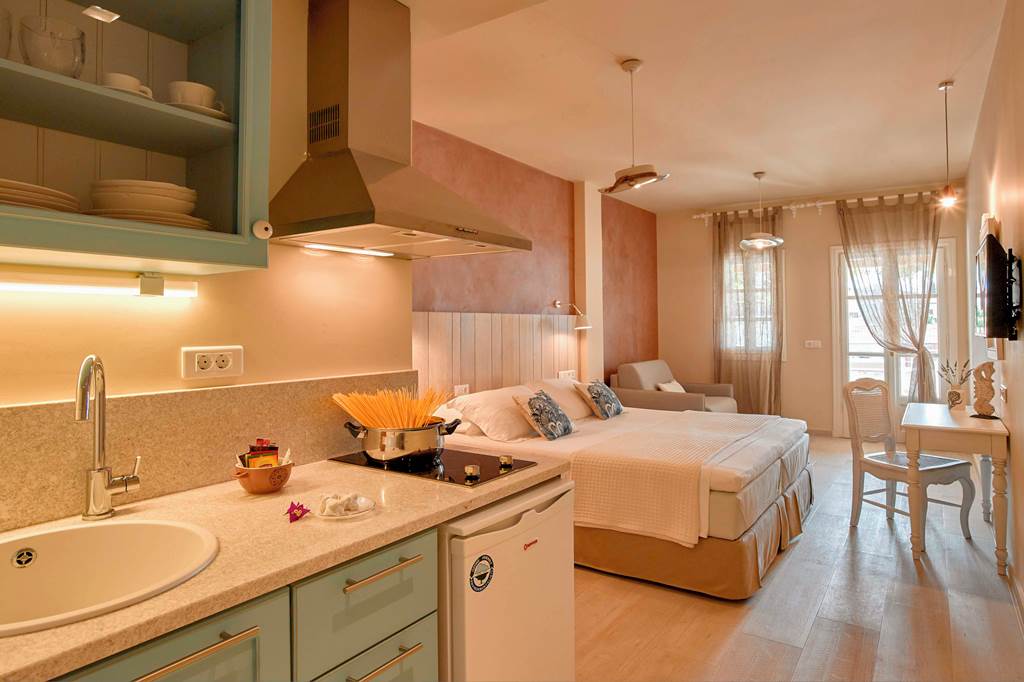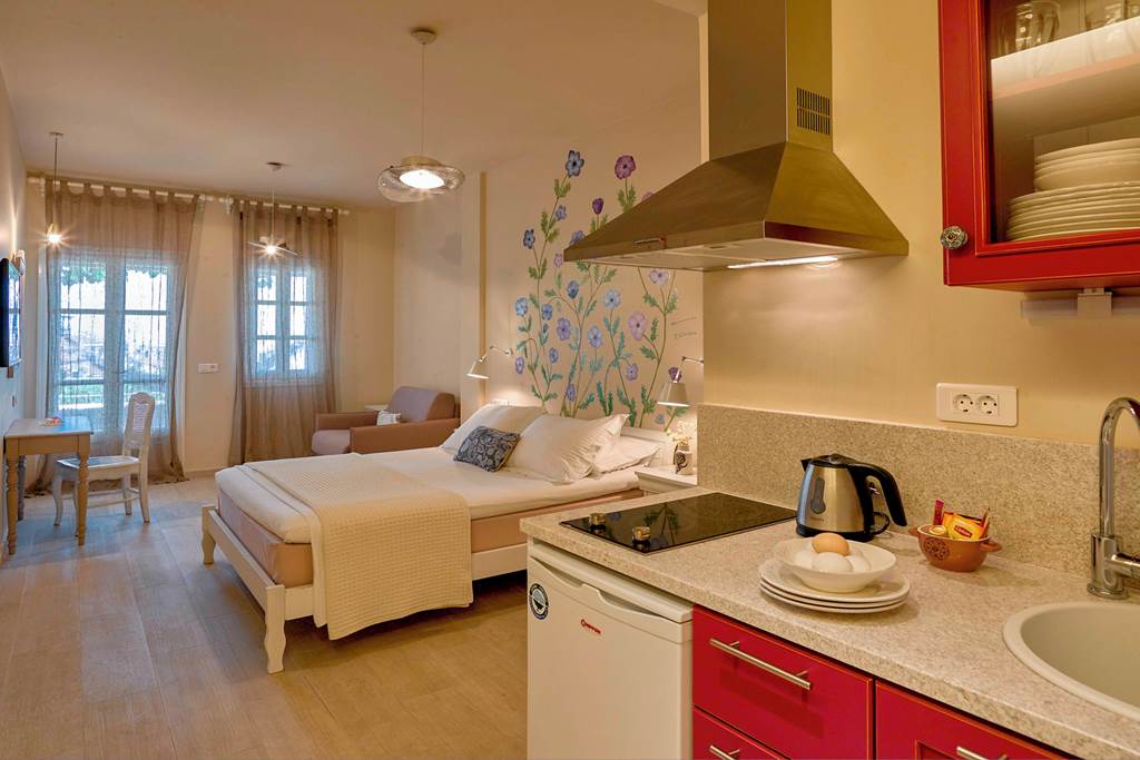You can expect a warm and friendly welcome at the Konstantina Boutique Studios. These studios boast stunning views from its hillside position and a traditional Greek breakfast to start the day. This unique hillside retreat has beautifully decorated rooms and comfortable beds, ideal for couples wanting a relaxing stay.