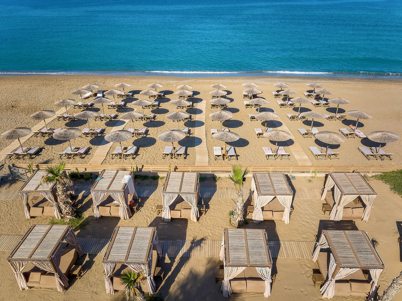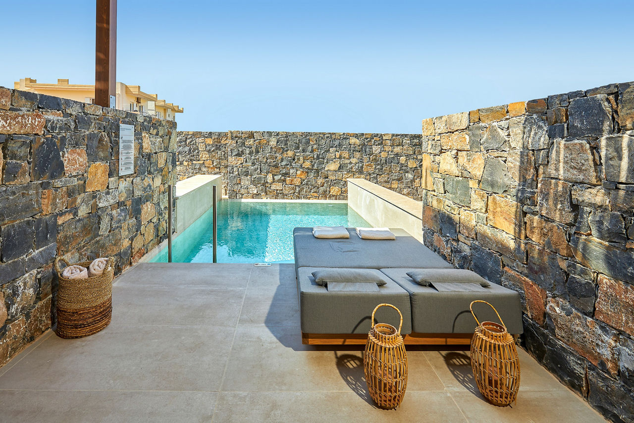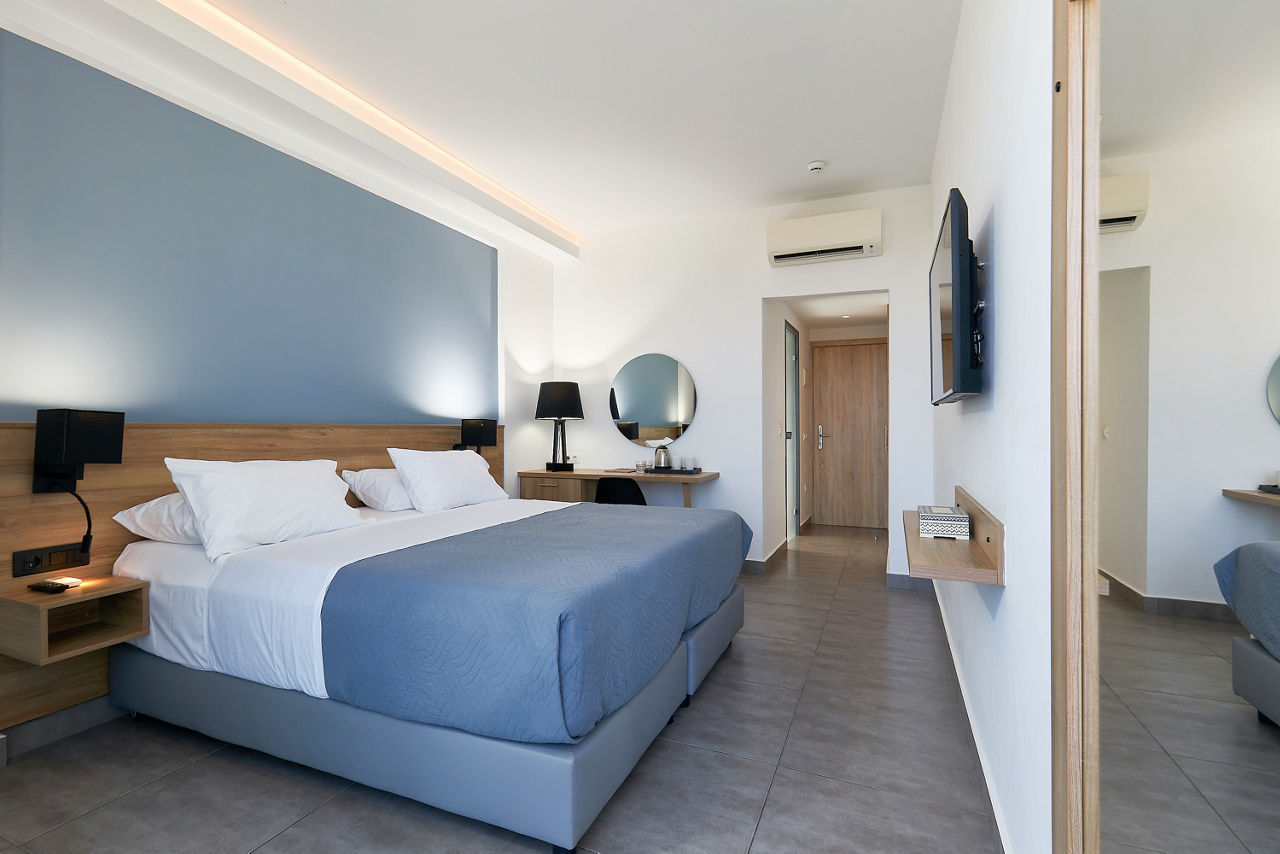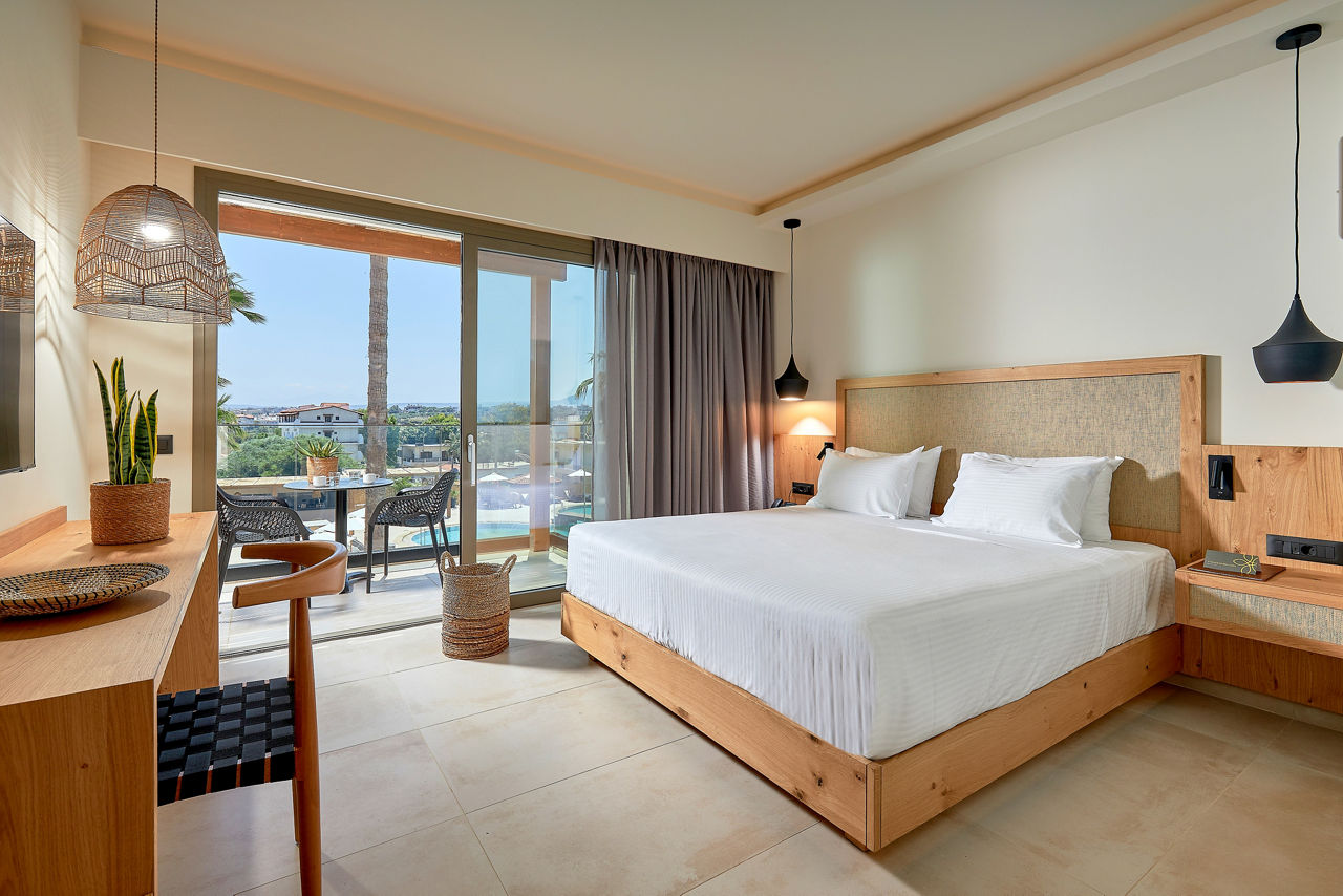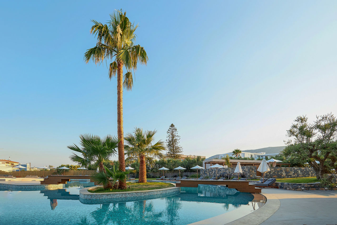 When you’ve got a relaxing retreat on your mind, look no further than Sentido Amounda Bay! Set on Heraklion’s stunning stretch of coast, the views here are glorious. And the hotel itself is just as impressive. The rooms are decorated with wooden accents and dim lighting to create a tranquil stay from the offset. Relax on comfortable sunloungers or floating pool beds to soak in the sun before making your way to the one of the restaurants, where a range of international cuisines is on offer to please every visitor. When it’s time to unwind, visit the wellness centre to feel truly refreshed. Then, when night falls, enjoy the variety of professional shows on offer before heading to one of the bars to sip the rest of your evening away.