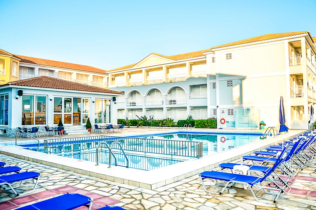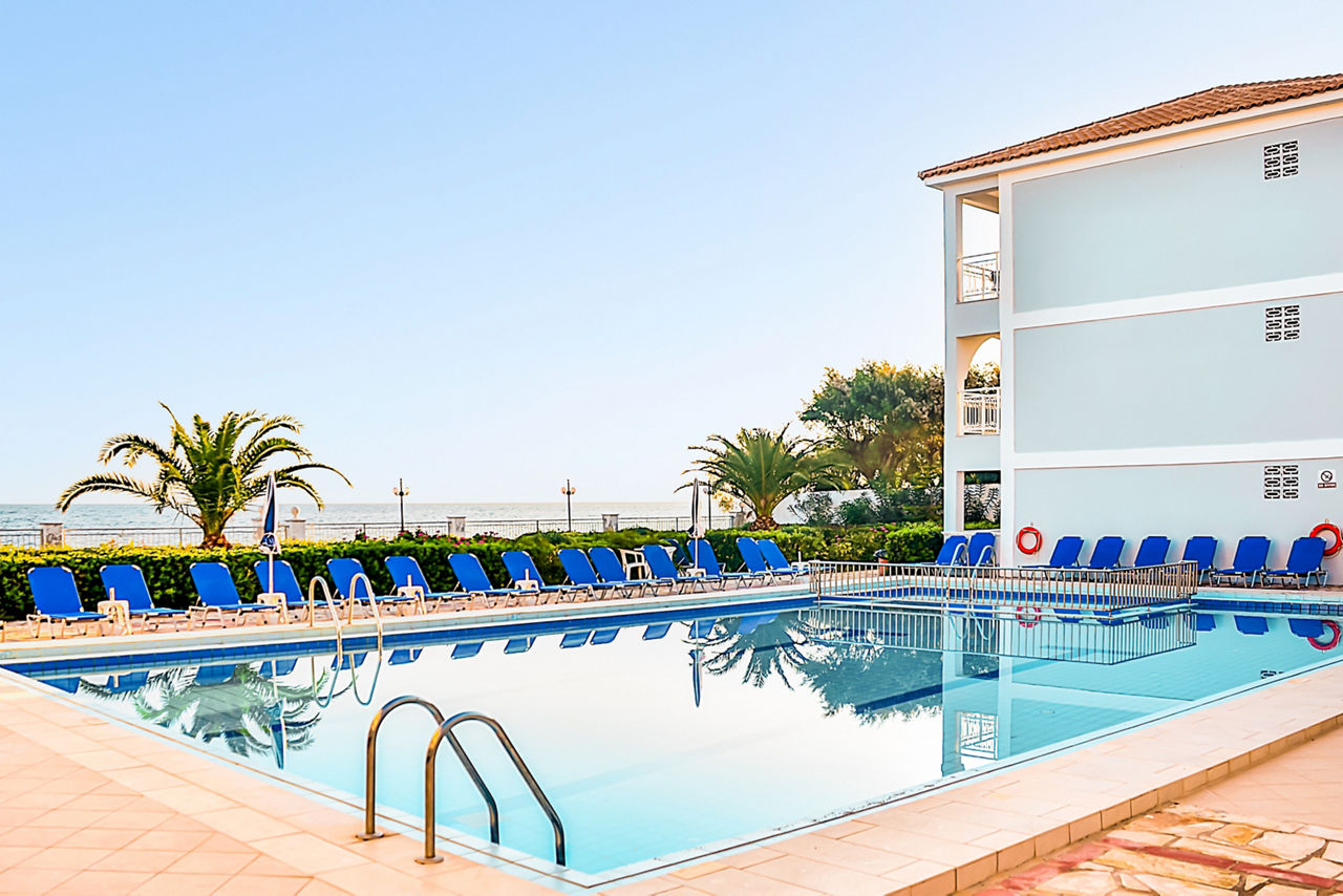 The Meridien Beach is located in an enviable position along the seafront of Argassi, with shops, bars and restaurants only a few minutes' walk from the hotel too, so evenings can be enjoyed experiencing the local nightlife. On top of the great location, the studios are bright and spacious, ensuring guests have a comfortable stay, and the outdoor pool and terrace with pool bar enjoy uninterrupted sea views.