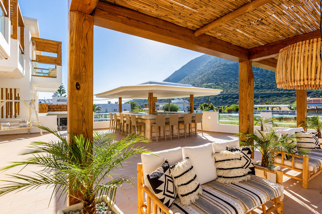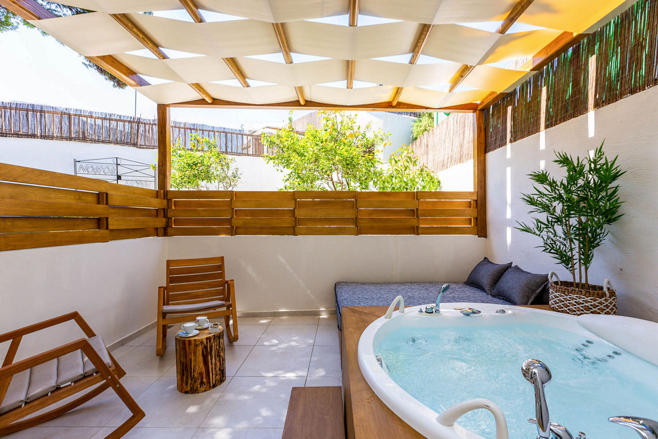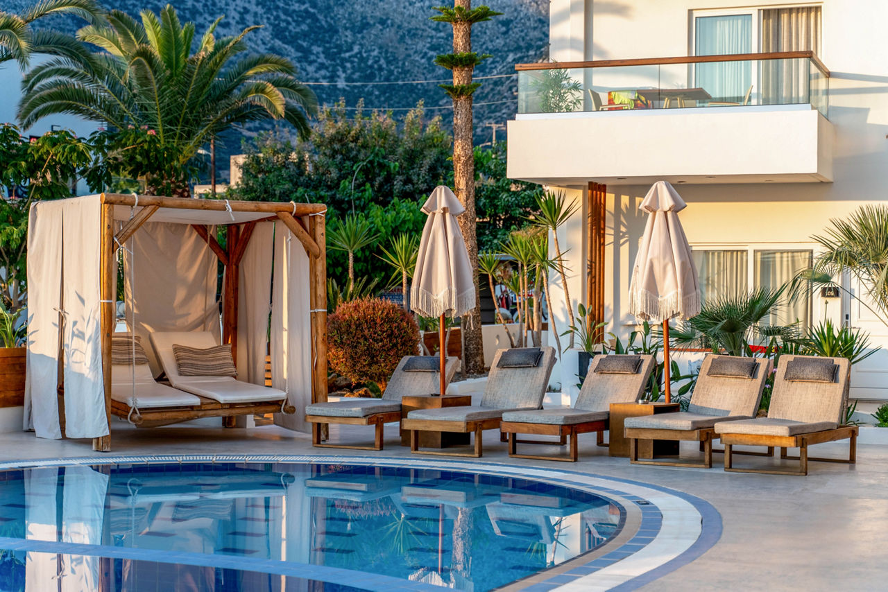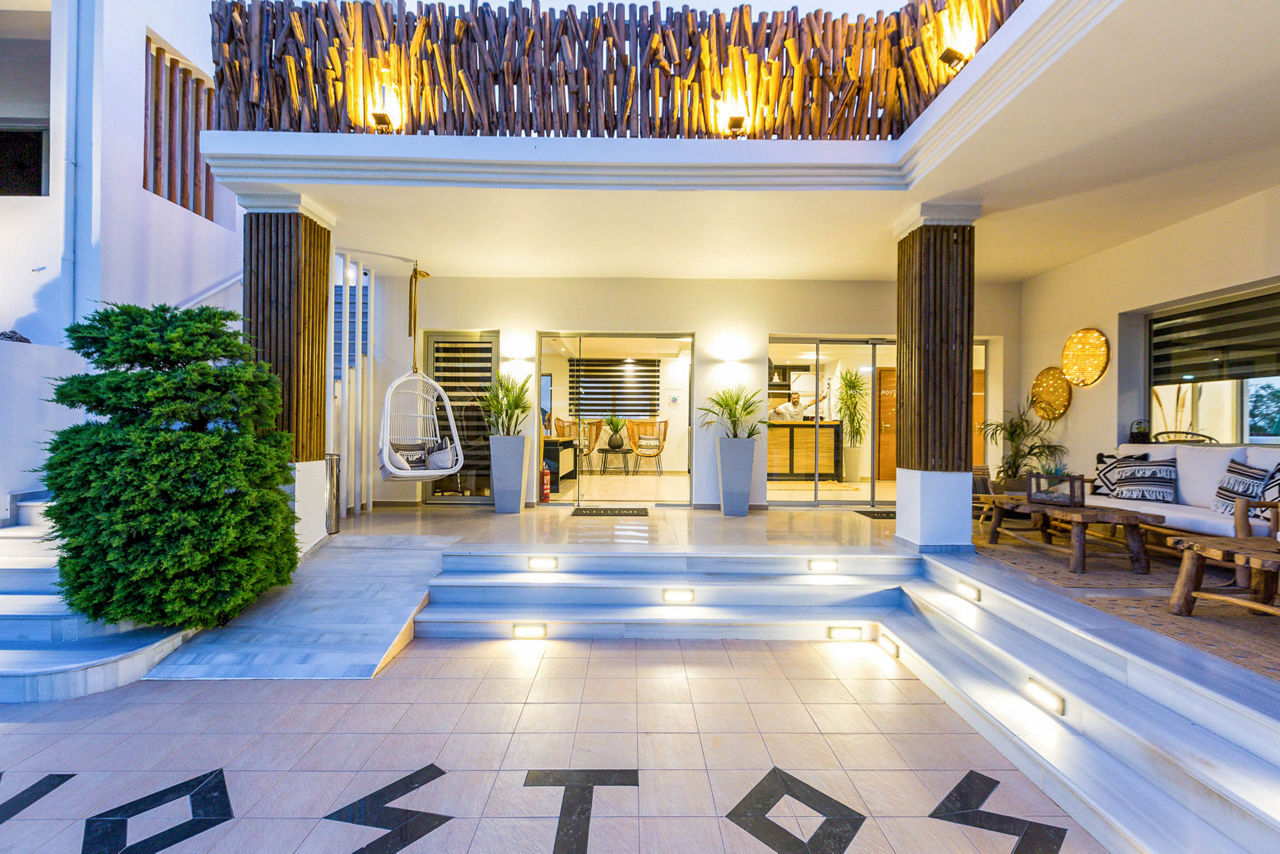 Boutique by name, and boutique by nature. Nostos Beach Boutique Hotel boasts the perfect location just steps from the beach. Cosy loungers by the pool, beach bar at your fingertips and the mountains in the background offering the perfect setting. Sip a cocktail at the bar, or opt for the buffet before retiring to the comfortable rooms.
