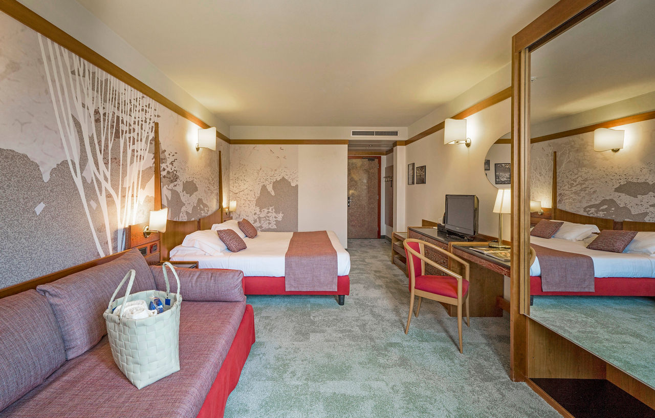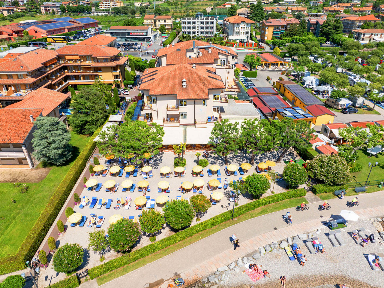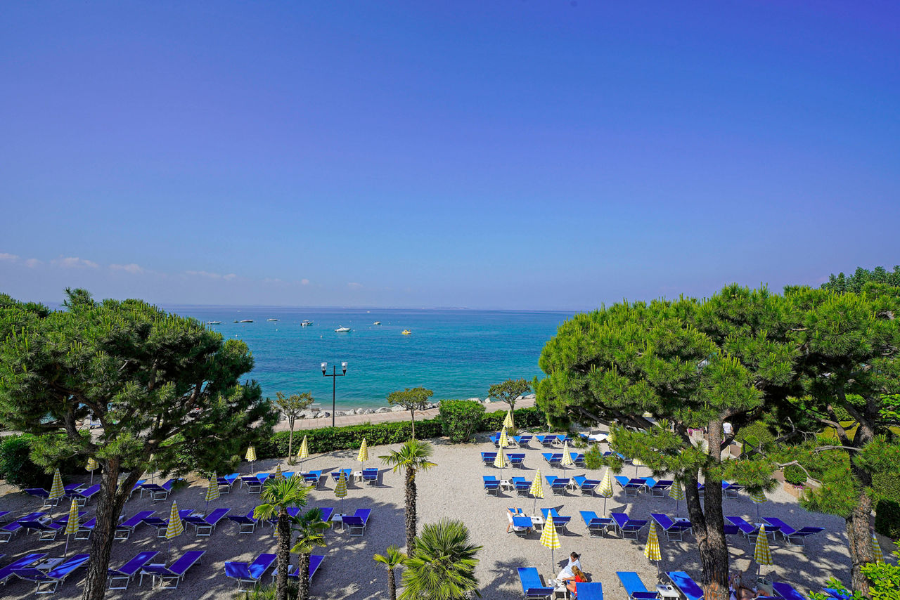 Hotel Du Lac et Bellevue in Bardolino enjoys a stunning lakefront location on the shores of Lake Garda, offering direct access to its own private pebble beach complete with sunbeds. Guests can unwind in the hotel's wellness centre, work out in the fully equipped gym or enjoy the connected indoor and outdoor pool. The hotel offers the perfect balance of relaxation and activity, all in a scenic lakeside setting. A leisurely walk along the promenade brings you straight to the charming centre of Bardolino, filled with shops and cafes.