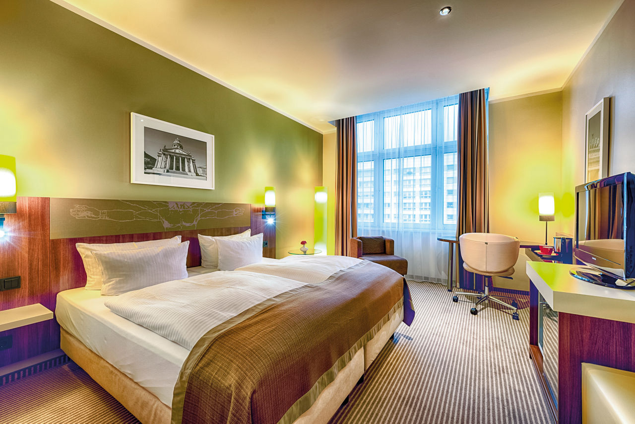 The Leonardo Royal Hotel Berlin Alexanderplatz is conveniently located just moments away from the famous Alexanderplatz square and within close proximity of public transport links, providing easy access to all parts of the city. Relax and take in the breath-taking views of Berlin on the 7th floor wellness area, complete with gym, sauna, steam room and relaxation room. Be sure to spend some time enjoying the elegant lounge bar, which is the perfect starting point for an exciting evening. The hotel restaurant serves up some delicious Mediterranean and Asian dishes, perfect for a cultural evening.