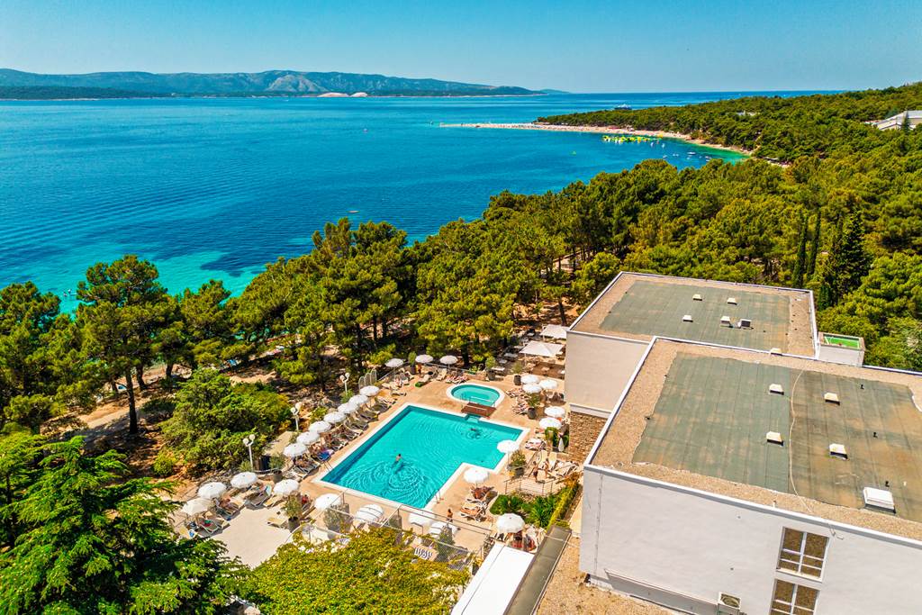Looking out to crystal clear waters and tucked within a pine forest, Bluesun Hotel Borak embraces a welcoming atmosphere and has an enviable beachfront location. Total relaxation is on the agenda here; sip a chilled cocktail by the lovely pool area or take in the landscape of one of the most beautiful island settings in Europe. There's some idyllic villages and beach bars to explore nearby, but the best thing about this property is its easy access to Brac Island's star attraction; following the seafront promenade will bring you to the famous Zlatni Rat Beach - better known by the locals as the Golden Horn!