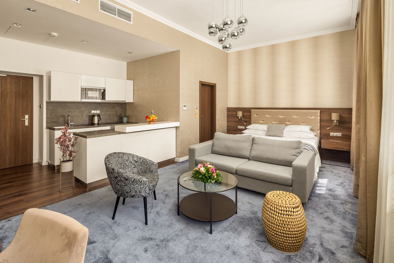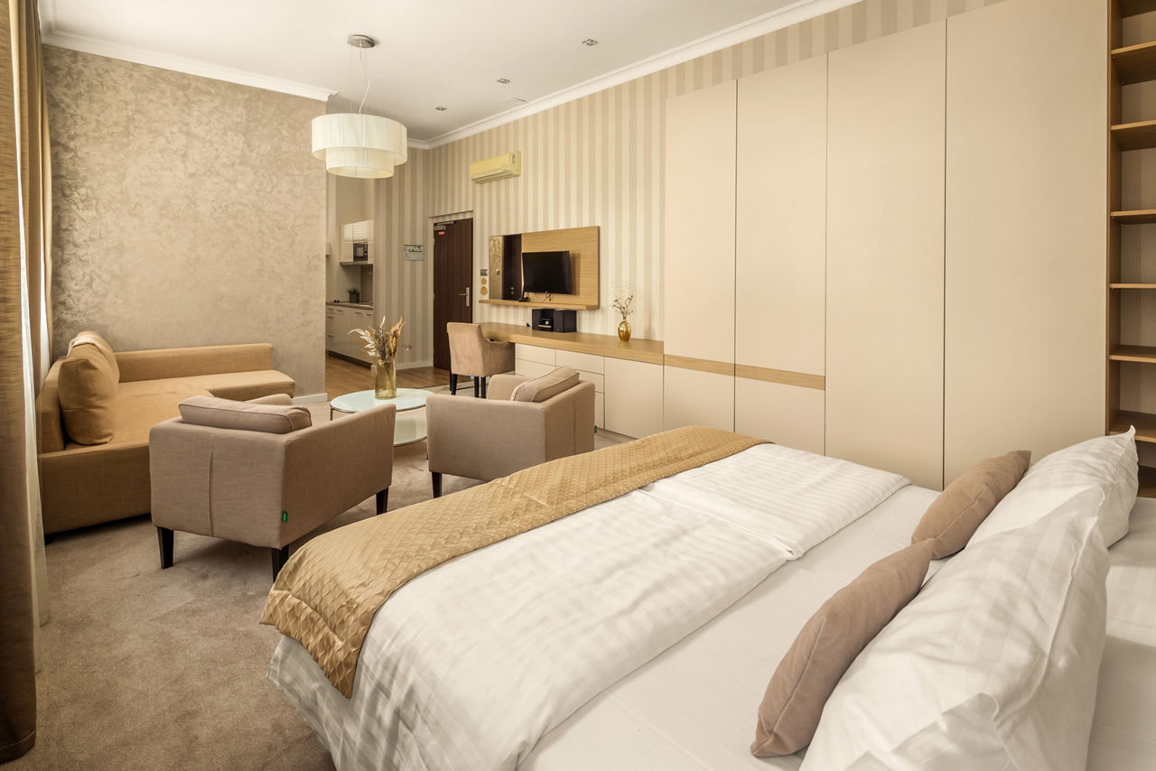 Mamaison Residence Sulekova invites you to stay in the stylish and modern accommodation. Choose from a wide range of comfortable rooms available, from an Executive room to a Two Bedroom Apartment and ensure you have a successful break. Located in the quieter residential area, but still close to all the city attractions, making it a great base for sightseeing. If you are looking for quieter, but convenient location – this is it!