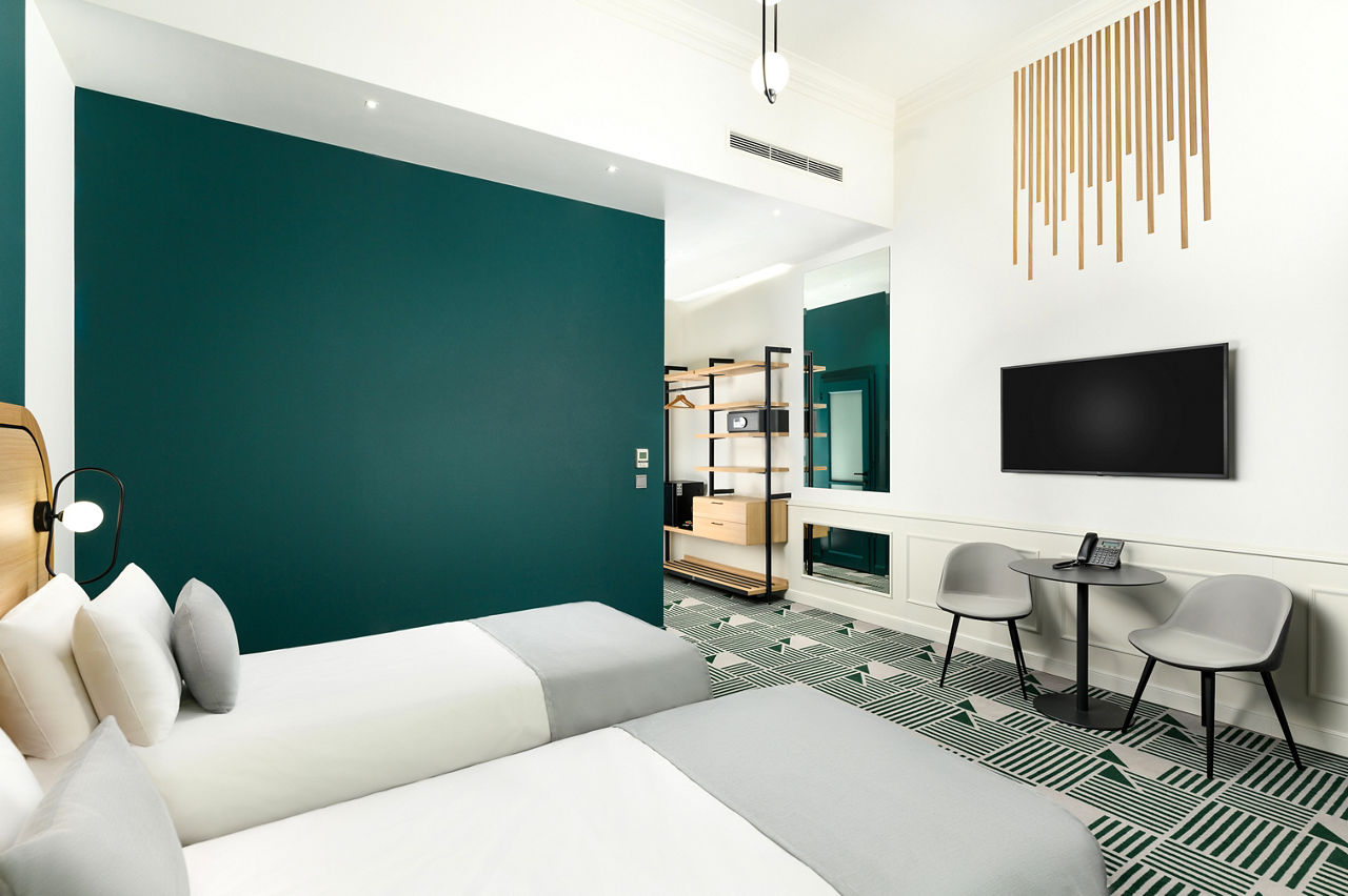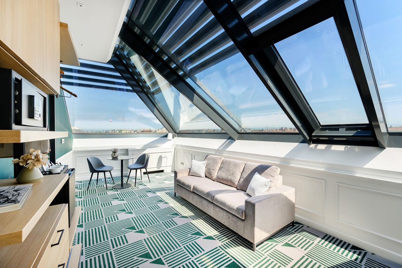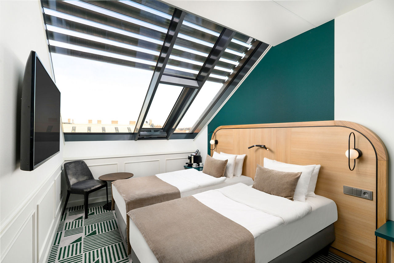 Located on Andrassy Street sits the Hotel Oktogon Haggenmacher, based in a historic building with a modern interior, it is ideal for guests who want both a comfortable yet beautiful hotel. Have a drink at the Bar room, a stylish bar with cocktails on offer, or chill out in the lounge room, a historic room for people to relax. With its prime location, guests can easily explore Budapest’s cultural landmarks, shopping districts, and cuisine options.