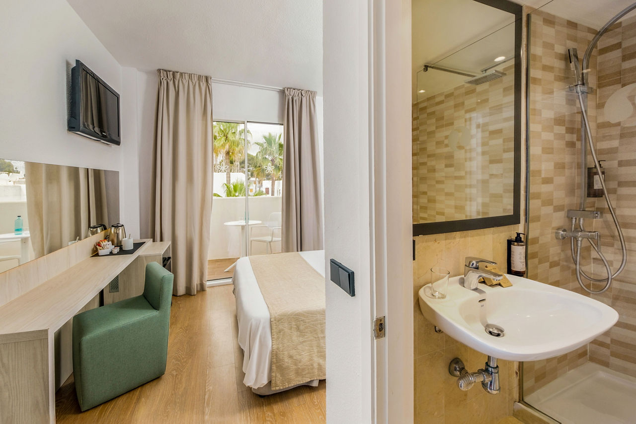 Hotel Fido Tucan Adults Only offers a peaceful retreat, situated in an exclusive spot within the picturesque bay of Cala D’or. The large outdoor pool area is perfect for relaxing and soaking up the sunshine, or for those who prefer, a short stroll will take you to the nearby beach, where you can explore the sandy coves that Cala D’or is famous for. The hotel features a buffet restaurant, a snack bar, and even a gym, sauna, and indoor whirlpool for ultimate relaxation. For an evening out, head to the vibrant resort centre of Cala D’or, where you’ll find a variety of shops, bars, and restaurants to enjoy.