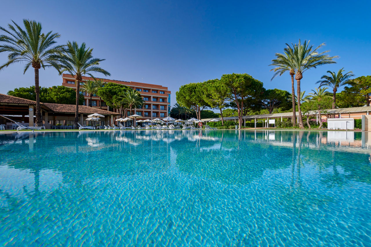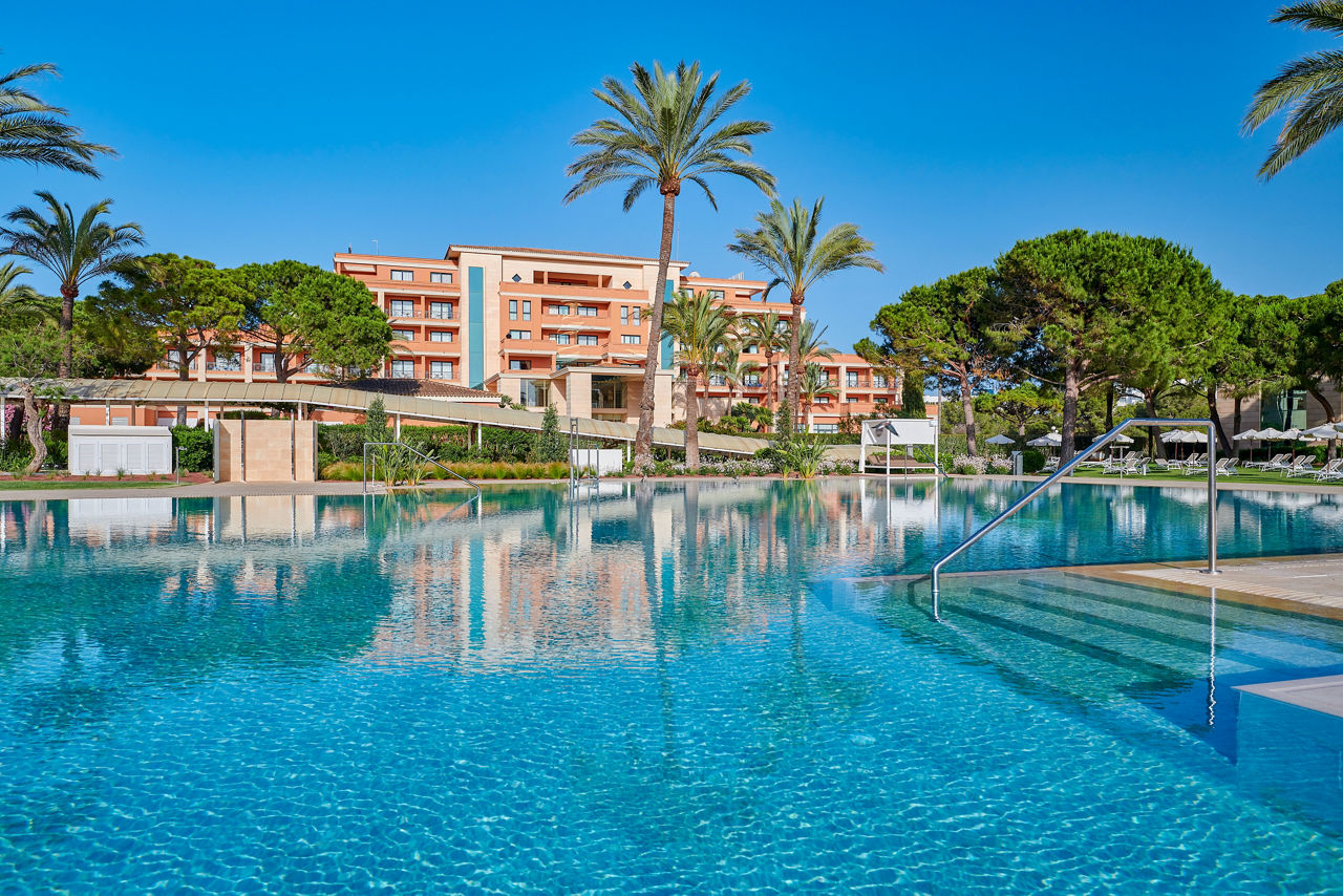 Hipotels Hipocampo Palace is a luxurious retreat in a fantastic location, just a short stroll from the golden sands and close to shops, bars, and a nearby golf course. Lush Mediterranean gardens frame the sparkling pool, where Bali beds invite you to unwind and soak up the sunshine. The elegant buffet restaurant serves a tempting mix of local and international dishes, perfect for al fresco dining on the terrace. With tennis courts, evening entertainment, and exceptional facilities, this welcoming hotel is a firm favourite for those seeking a touch of luxury in a relaxed, laid-back setting.