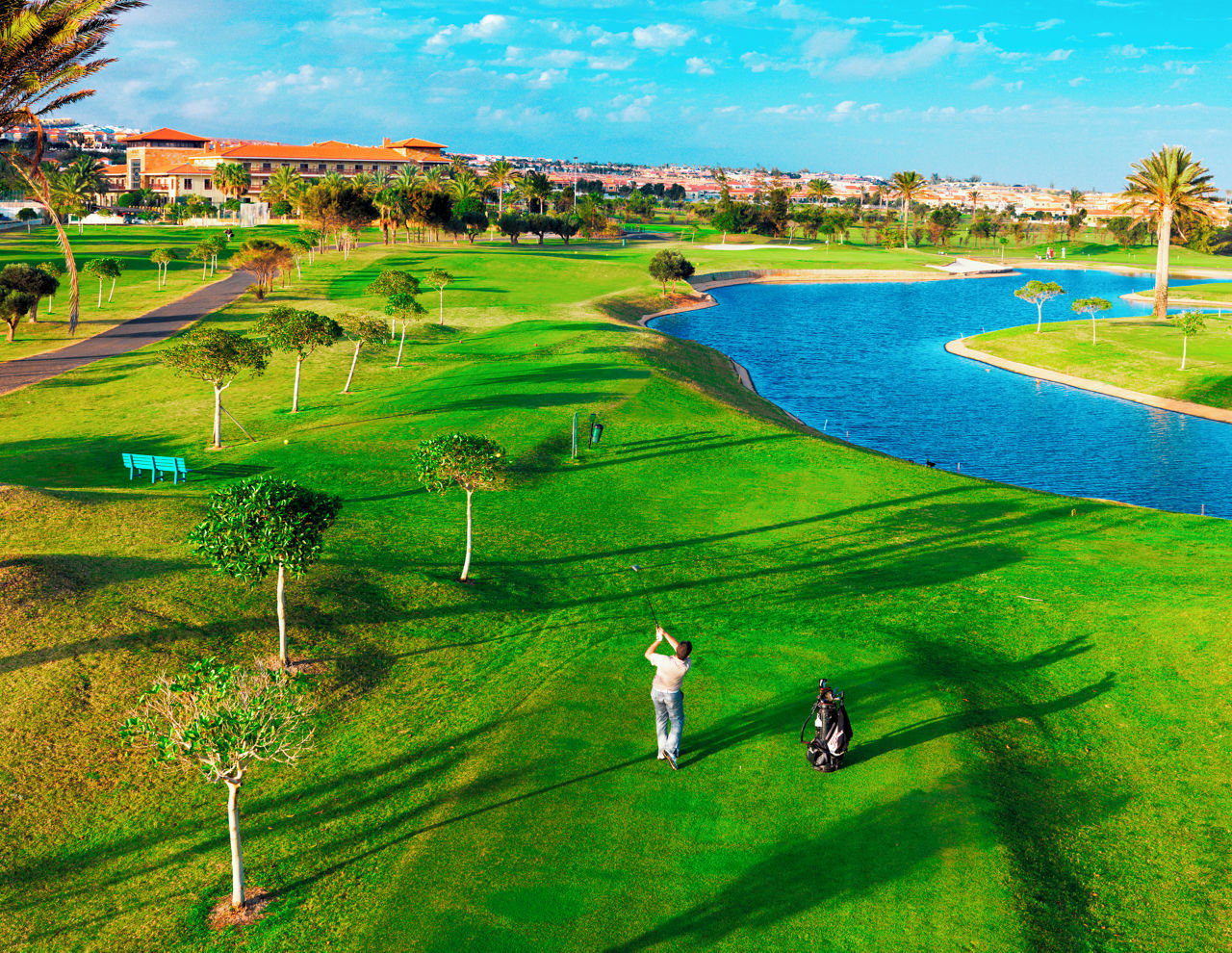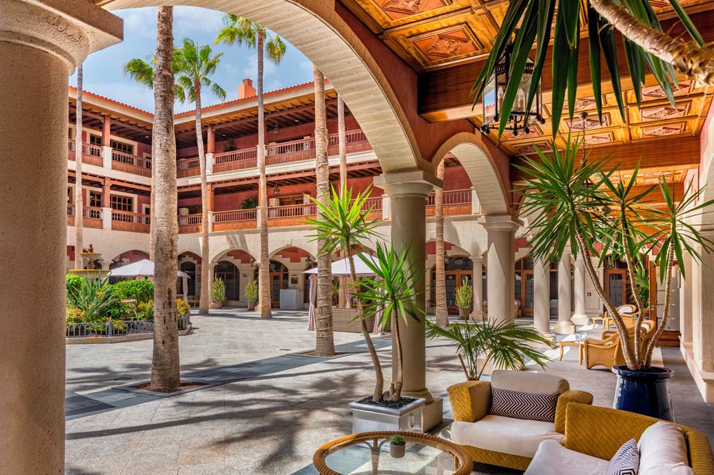Enjoying a unique location, encircled by a splendid golf course, this adults only boutique hotel is perfect for a peaceful escape. A celebration of traditional Canarian architecture, you will find exquisite detail in the harmonising stone and terracotta tones, beautiful wooden balconies and magnificent sunlit courtyard filled with towering palms. Plus, you will receive 5 rounds of golf included on the 18-hole course which is just on your doorstep.