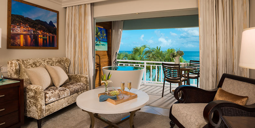Sandals Regency La Toc also offers “Stay at One, Play at Three” exchange privileges. This allows access to the facilities at Sandals Halcyon Beach and Sandals Grande St. Lucian, including 27 restaurants, 21 bars, all beaches and every resort amenity, with complimentary round-trip transfers between resorts included.