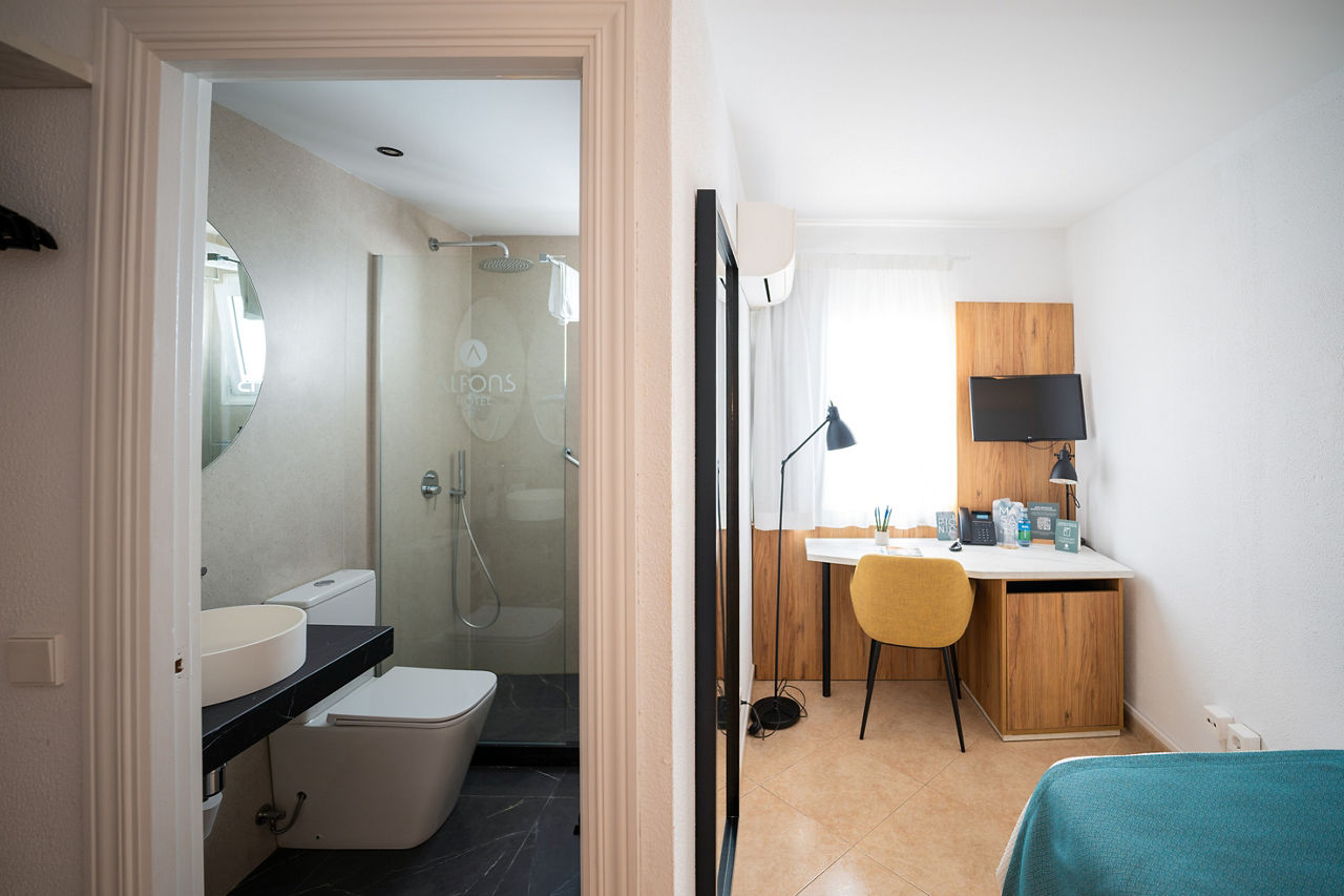 Hotel Alfons, located in the charming town of Ciutadella on the beautiful island of Menorca, offers guests a warm and welcoming retreat. With its prime location just a short distance from the historic centre, this friendly hotel combines modern comfort with a touch of traditional Mediterranean flair. Hotel Alfons provides an ideal base for exploring the island’s rich cultural heritage, stunning beaches, and picturesque landscapes. Whether visitors are seeking relaxation or adventure, the hotel’s excellent service and cosy atmosphere ensure a memorable stay for all who step through its doors.