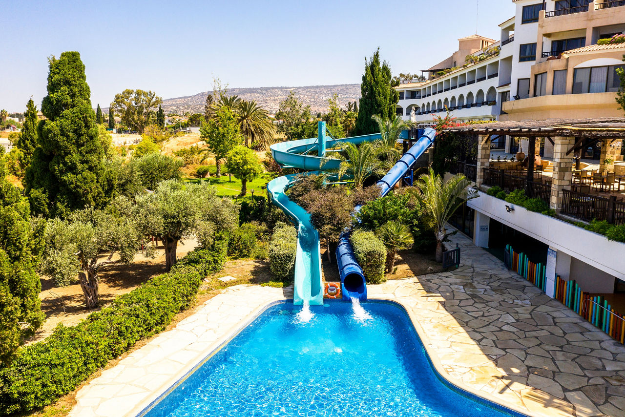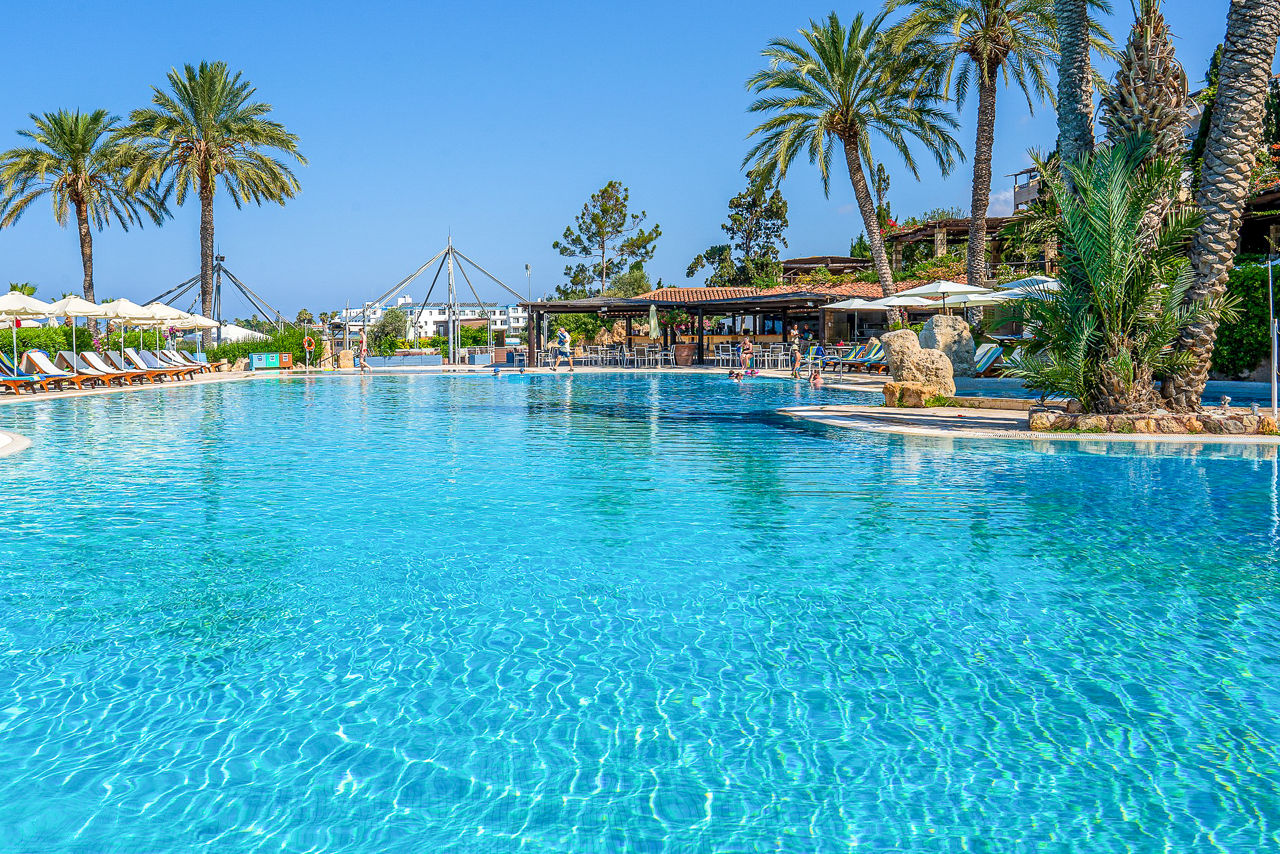 Located in the beautiful and popular area of Coral Bay, Coral Beach Hotel & Resort boasts views across the landscaped gardens and beach. The architecture is a modern twist on the traditional, with service, relaxation and enjoyment being at the centre of everything. There are plenty of historic sites in nearby Paphos to explore, plus a number of different dining options and leisure facilities, including children's pools and waterslides, making this property a great choice for both families and couples alike. Whether you're on holiday to relax and lounge by the pool, or get out and experience the culture of the Mediterranean, this hotel allows for it all.