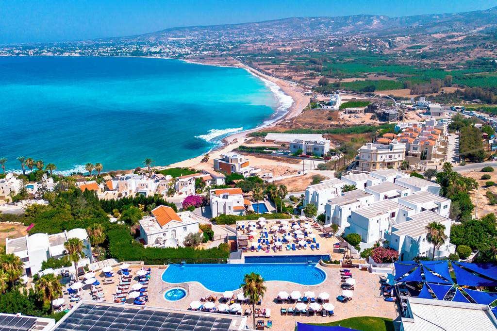 Nestled on a clifftop between Paphos and Coral Bay, the Theo Sunset Bay Hotel boasts panoramic views of the rugged coastline of northwest Cyprus from its serene outdoor pool. A family-run property which prides itself on friendly Cypriot hospitality, accommodation at the Theo Sunset Bay is comfortable and well-presented and is complemented by a range of facilities including a gym and spa. This is a fantastic option for guests looking for a relaxing holiday in the Cypriot sunshine.
