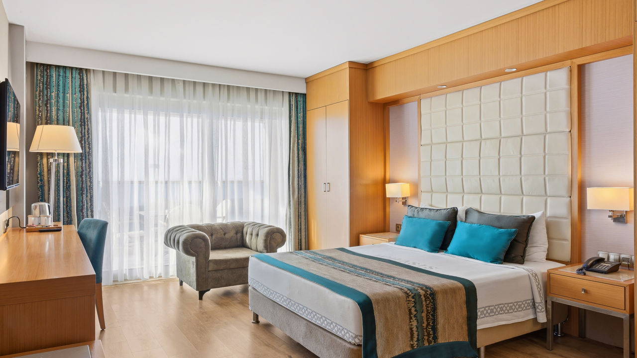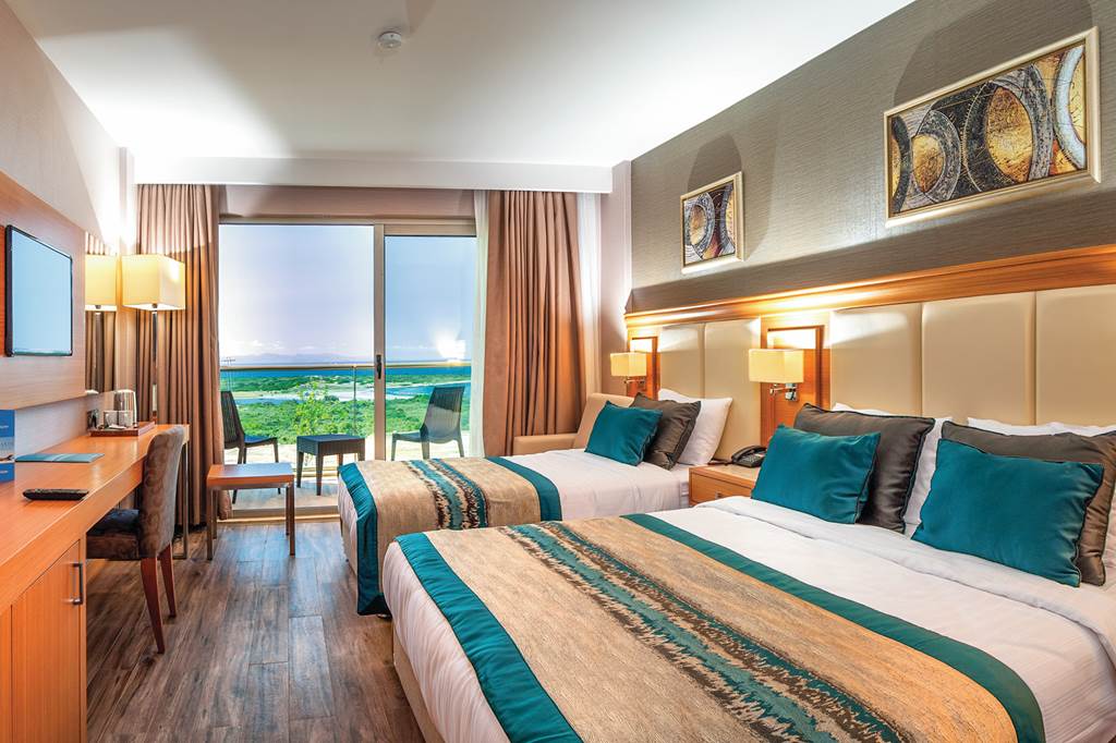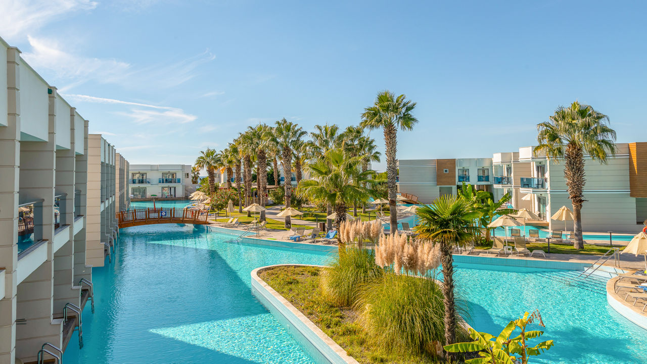 Private beach? Tick. On-site waterpark? Tick. Dazzling entertainment programme? Tick! This huge hotel has something for everyone. You’ll find it on the south-west coast of Turkey, close to the centre of Altinkum and its many shops, bars and restaurants. Soak up the rays by one of the four pools or why not visit the beach? The beach is reserved only for hotel guests, plus there’s an exclusive pier that reaches out over the glistening water. You can choose from six restaurants serving a huge variety of cuisines, before heading to one of the bars for drinks. Don’t miss the late-night disco bar on the beach!