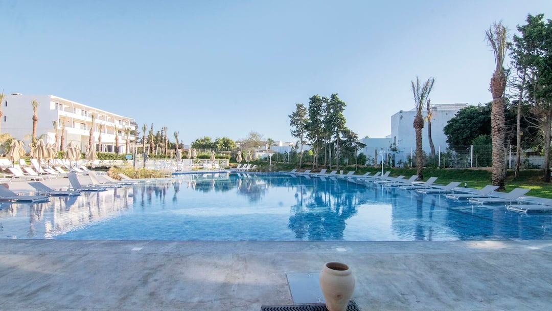 A wide range of activities and sports are available throughout the day, while the spacious outdoor swimming pools and sandy private beach provide the perfect setting for relaxation. A lively daytime and evening entertainment programme includes live music, themed shows, and activities for all ages. For those seeking pure relaxation, the spa and wellness centre offers a peaceful retreat with a hammam, sauna, jacuzzi, fitness centre, and a selection of revitalising body and beauty treatments.