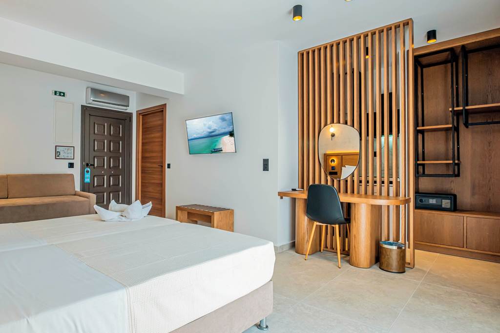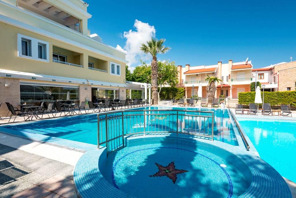 On a fine stretch of shingle beach and in close proximity to Hanioti resort centre, the Naias Apartments combine a perfect location with spacious and comfortable accommodation. The hotel offers modern amenities and traditional Greek hospitality, making this a perfect choice for couples looking for a peaceful getaway.
