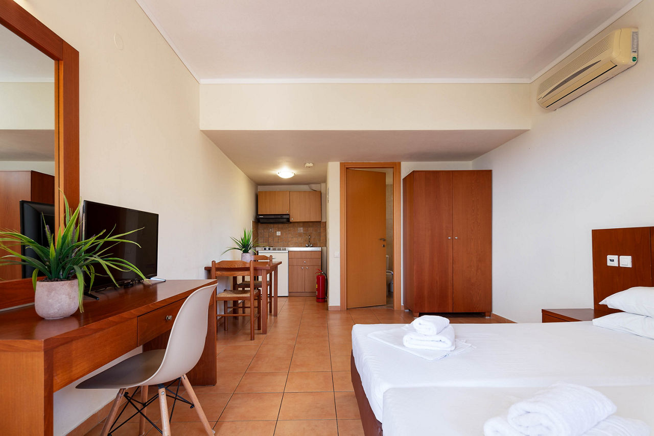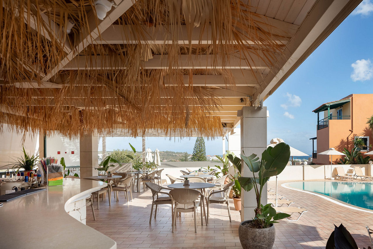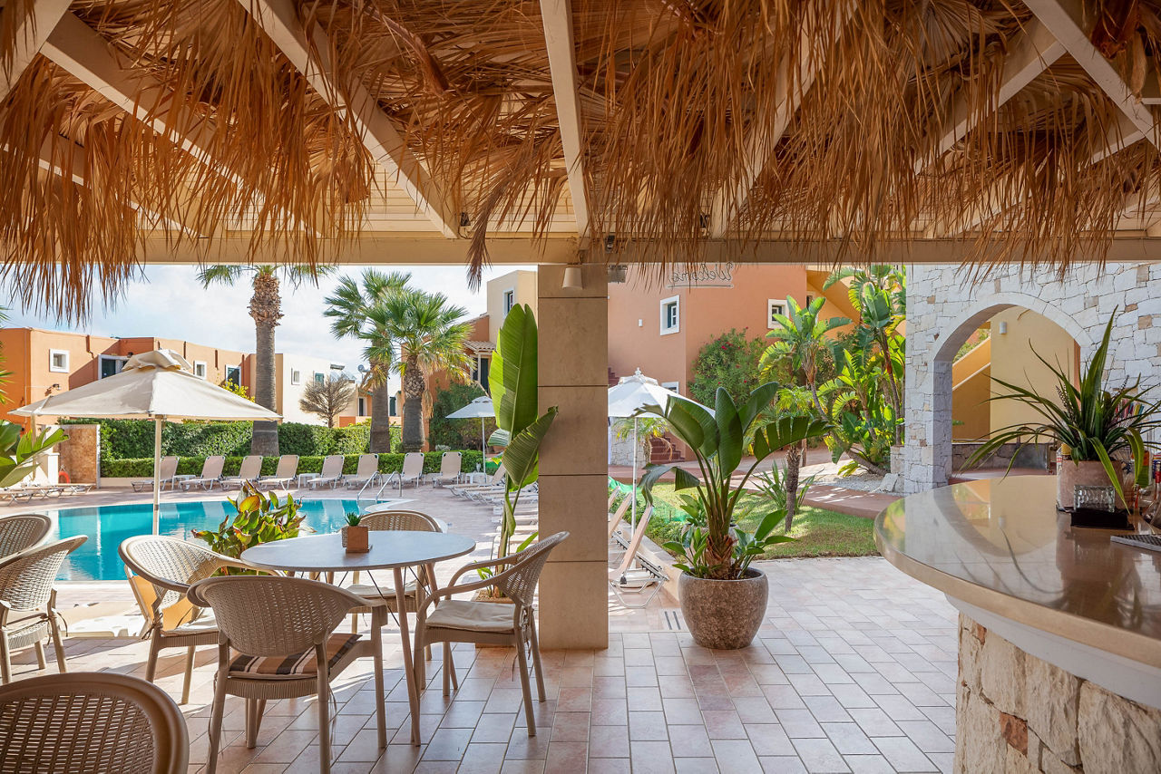 Offering well-equipped self catering accommodation, the Dia Apartments is a fantastic base to explore this stunning part of Crete. This family-run property is conveniently located within walking distance from bustling Hersonissos and the beach, but also close to small traditional villages, so there truly is something for everyone here. For more relaxing days, there’s a small, quiet pool area with sunbeds, and a convenient pool bar, perfect for grabbing a drink or snack.