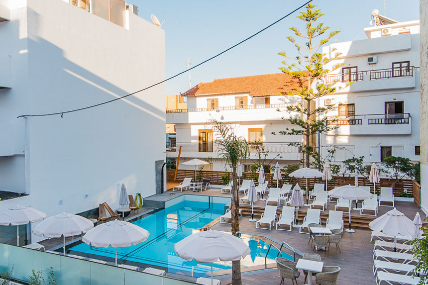 Kahlua Boutique Hotel is a stylish, adults only beachfront property located in vibrant Hersonissos, ideal for travellers seeking a lively atmosphere with easy beach access. The hotel features bright, clean rooms decorated with warm wooden and neutral accents, creating a fresh and welcoming environment. Guests can enjoy the relaxing pool and spa, plus a popular beach bar and restaurant, perfect for socialising day and night. This boutique hotel appeals to those looking for comfort and central location with a fun, energetic vibe. Overall, Kahlua offers great value and a memorable stay in a prime coastal setting.