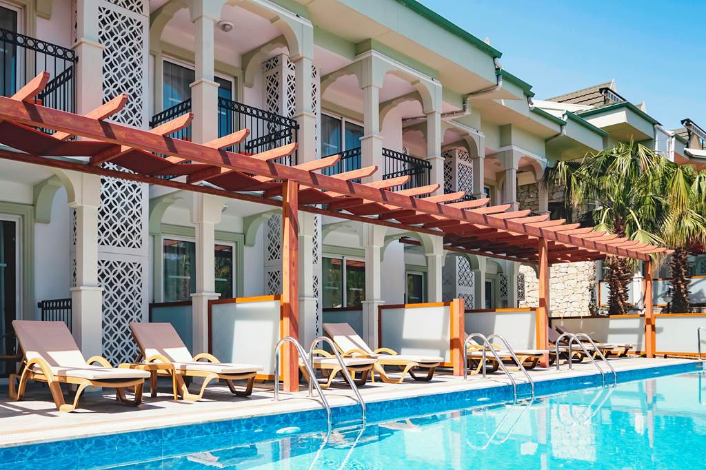 Green Forest Holiday Village benefits from a secluded and quiet forest location and a stunning mountain backdrop. This excellent setting offers the best of both worlds; it’s ideal for peace and tranquillity by day at the spacious freeform pool area at the heart of the complex with sunbeds aplenty, yet the proximity to Hisaronu means you're free to explore all that the lively resort has to offer when night falls.