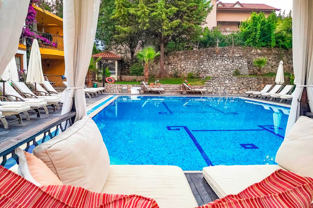 A tranquil oasis awaits at Olive Tree Studios. Nestled among lush greenery, yet just a short distance from the bustling Hisaronu resort, this hidden gem guarantees breathtaking views and a peaceful atmosphere. Combine that with elegant décor and superb service, and you’ve found your dream Dalaman escape. Whether you're unwinding by the serene pool, enjoying a refreshing tipple at the bar or venturing to nearby beaches, relaxation comes effortlessly here. Start your morning with a delicious breakfast at the hotel, or explore the local dining scene for a true taste of Turkey. Natural beauty, historic sites and an array of activities are all within reach too.