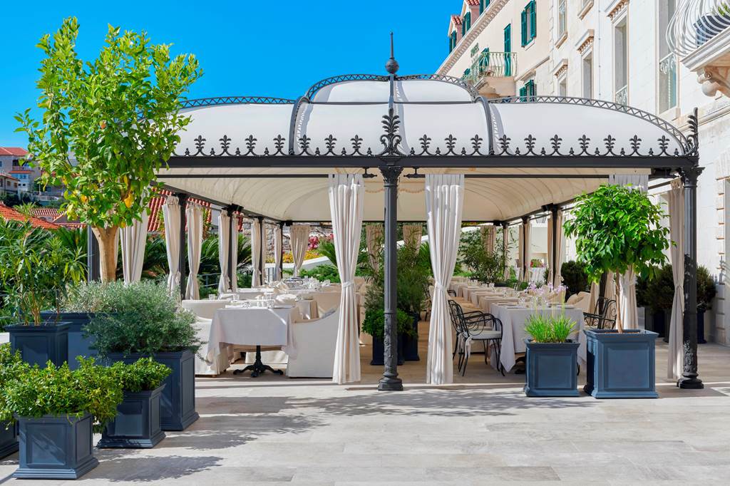Palace Elisabeth Hvar epitomises regal luxury. As its name suggests, this elegant hotel is the former summer residence of Princess Elisabeth, the Austrian Empress. As you’d imagine, it certainly delivers the wow factor... Past the dominating chandelier in reception, you’ll find historical remnants, the spa and indoor pool. This member of the ‘Leading Hotels of the World’ group houses nods to the past, including portraits. There are 45 fascinating samples of Elisabeth’s dresses and framed jewellery across the rooms and suites. Retreats here are best done by relaxing on the sun terrace, enjoying drinks at the Bloody Mary station and dining on marvellous Mediterranean fare.