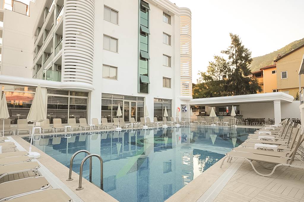 Idas Hotel is in a great location close to the centre of Icmeler and the beachfront. By day you can spend your days soaking up the hot Turkish sun at the lively outdoor pool area which also has a pool bar. On an evening, you’re just a short stroll from the nearby bars and restaurants in bustling Icmeler. Rooms are modern, bright and comfortable, making this an ideal choice for a good value all inclusive holiday.