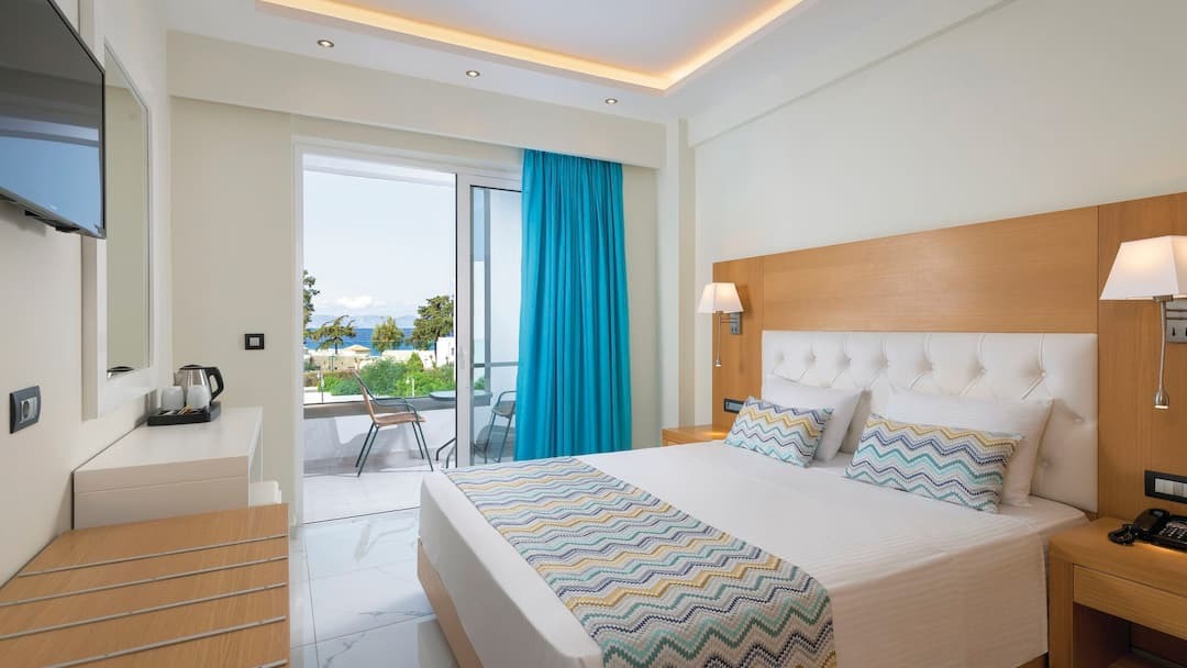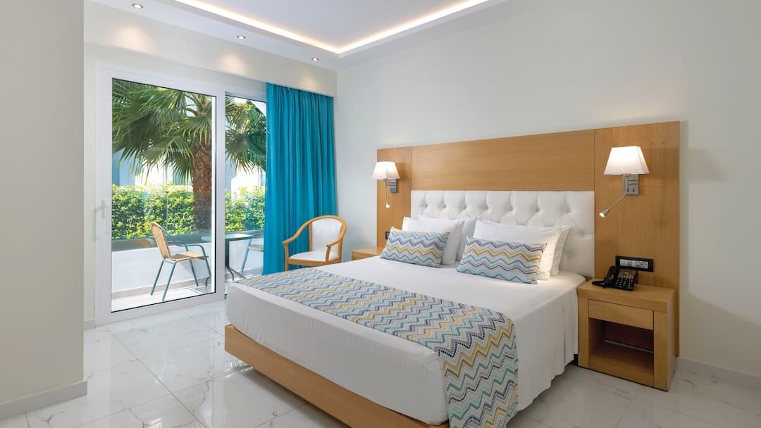 The rooms are bright and modern, featuring all the essentials for a comfortable stay, including air conditioning, a private balcony, and calming views of the gardens or pool. Whether you’re starting your day with a leisurely breakfast or winding down in the evening with a drink on the terrace, the atmosphere is always relaxed and friendly.