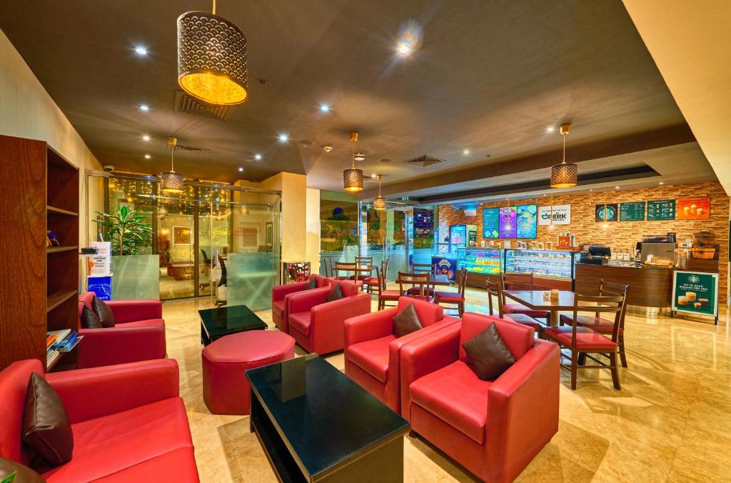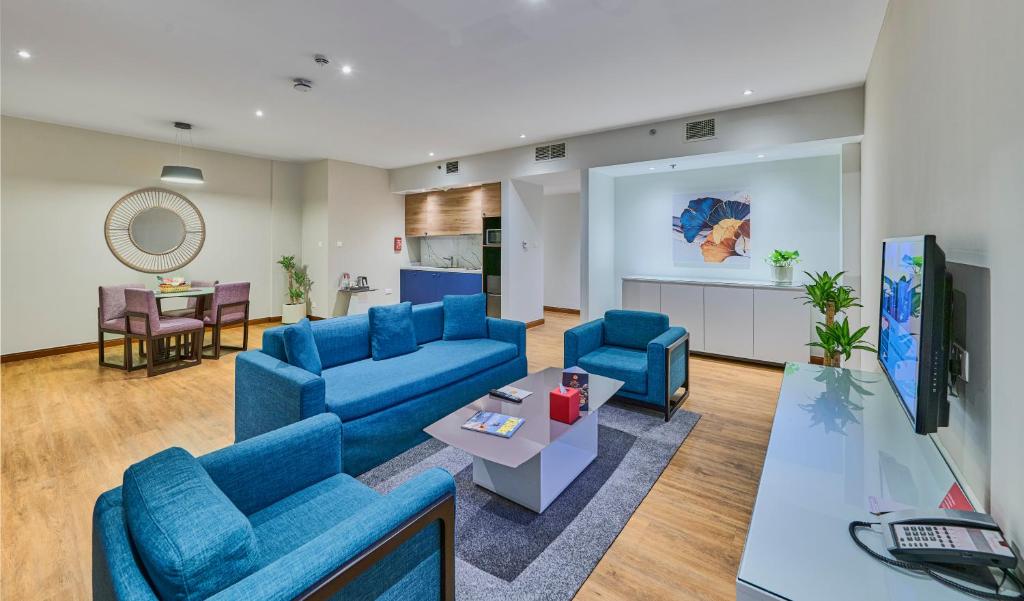The contemporary rooms and suites are designed for relaxation, featuring stylish décor, comfortable furnishings, and thoughtful amenities, including fully equipped kitchenettes in select suites. Guests can unwind by the outdoor pool, enjoy international cuisine at the on-site restaurants, or make use of the fitness centre and other leisure facilities.