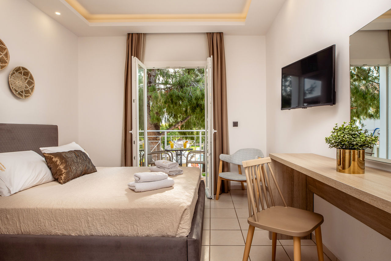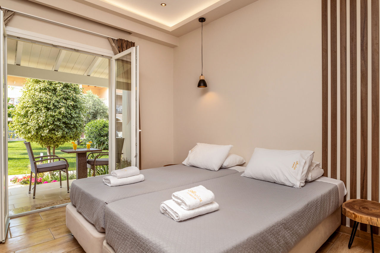 Set within lush gardens and surrounded by greenery you will find the Aeolos Boutique Hotel & Suites. Relaxation is at the forefront here, so kick back and enjoy the pretty surroundings and friendly hospitality on offer. Tranquility continues in the rooms, which are spacious and beautifully decorated in soft tones. For more active days, the beach and resort centre are only a short walk away.