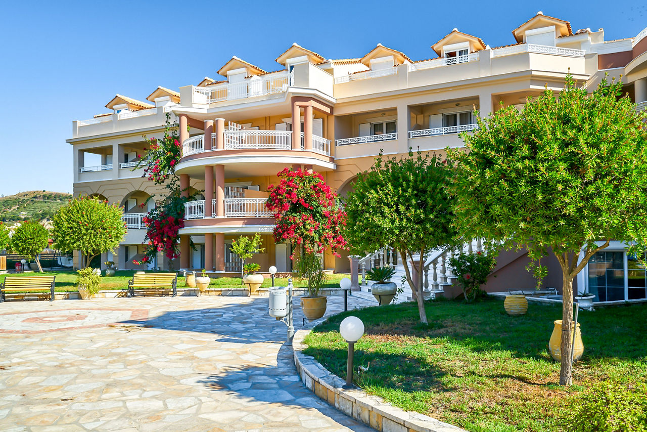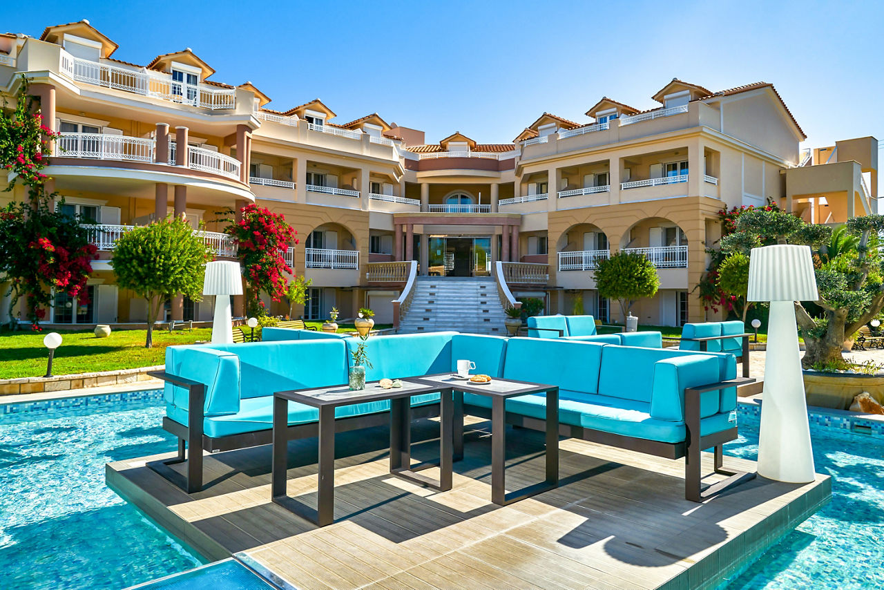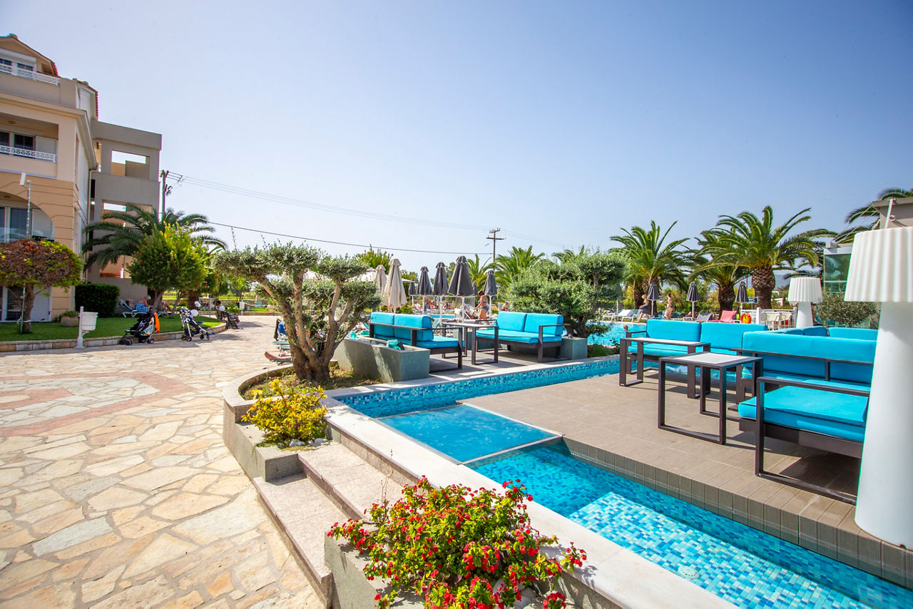Tucked away down a peaceful country road and surrounded by fields, the Ionion Blue is a relaxed property within walking distance of Kalamaki resort centre and the golden sandy beach. The Ionion Blue hotel offers spacious and well-maintained rooms and an excellent pool area. You can expect pretty gardens, comfy seating areas and a real suntrap of a terrace that wraps around the large lagoon-style pool. With friendly staff and a chilled atmosphere, you can see why guests return here year after year.