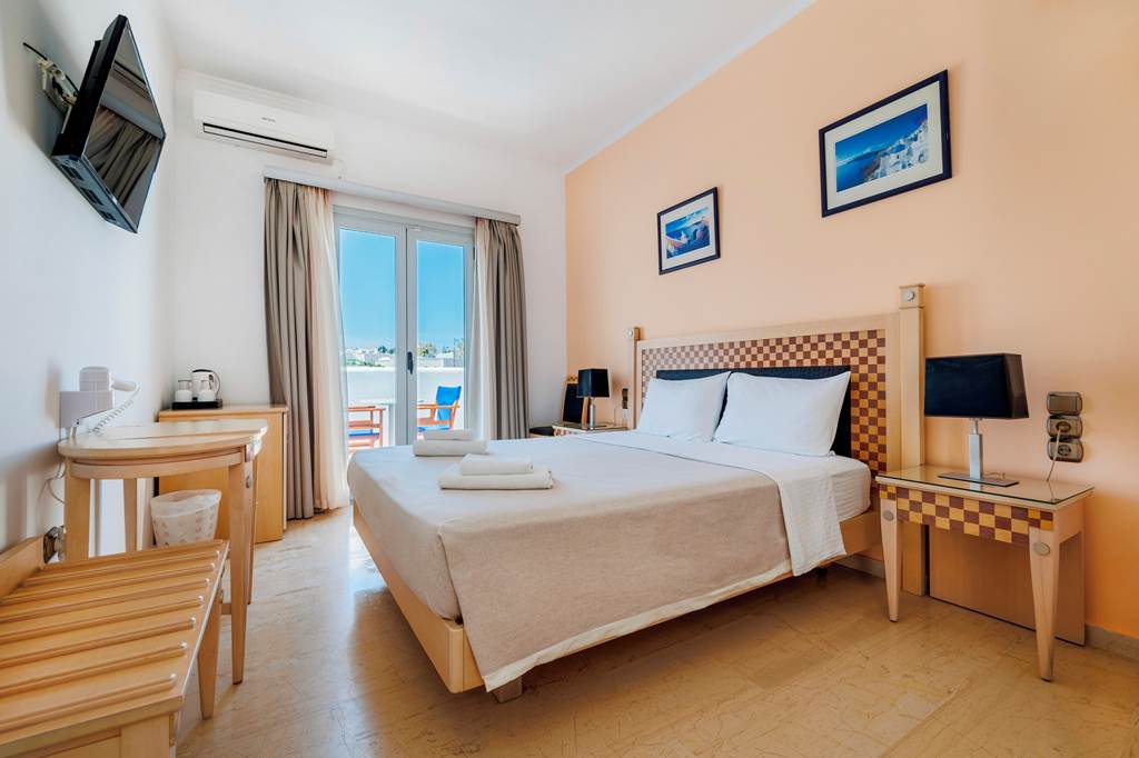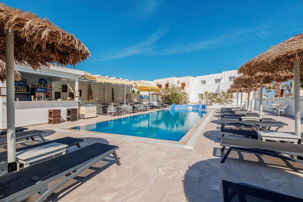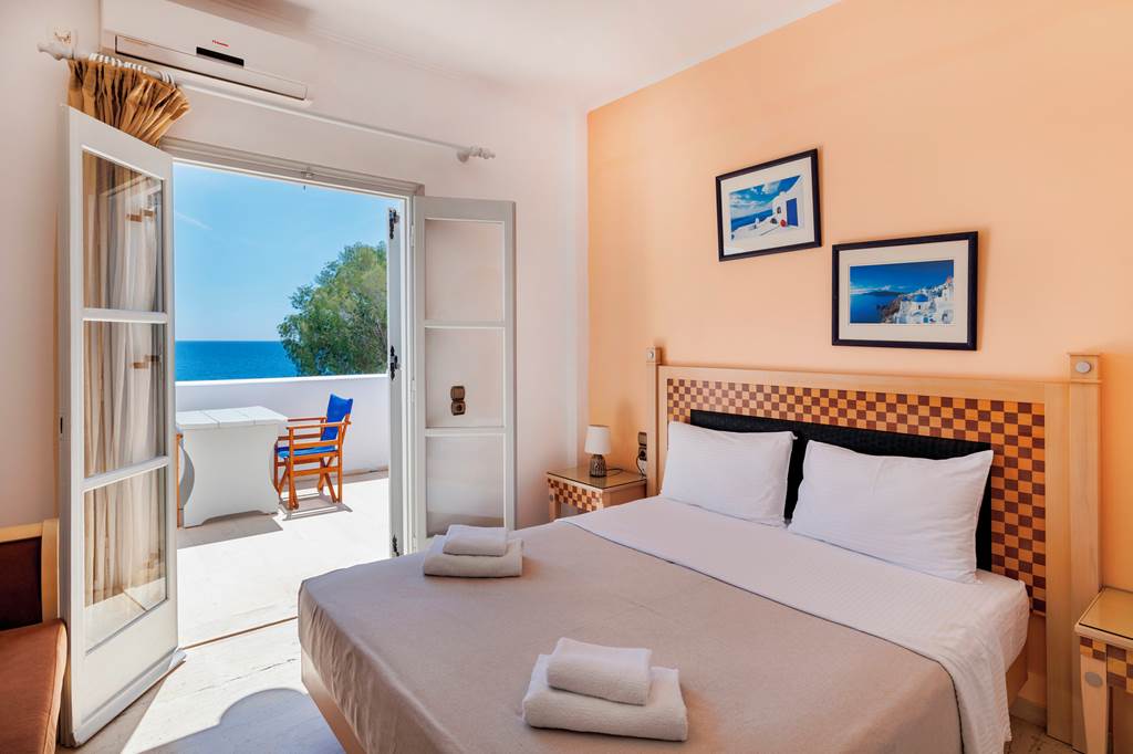 The Oxygen Seaside Hotel is a great choice for a comfortable stay. This family-run hotel offers excellent value for money and a central location; with the famous promenade boasting tavernas, bars and restaurants just a short walk away. The lovely outdoor pool has great views over the mountains and ancient Thira and on-site you’ll find this hotel ticks the boxes with its combination of peaceful relaxation and friendly Greek service.
