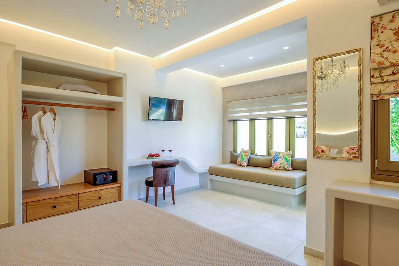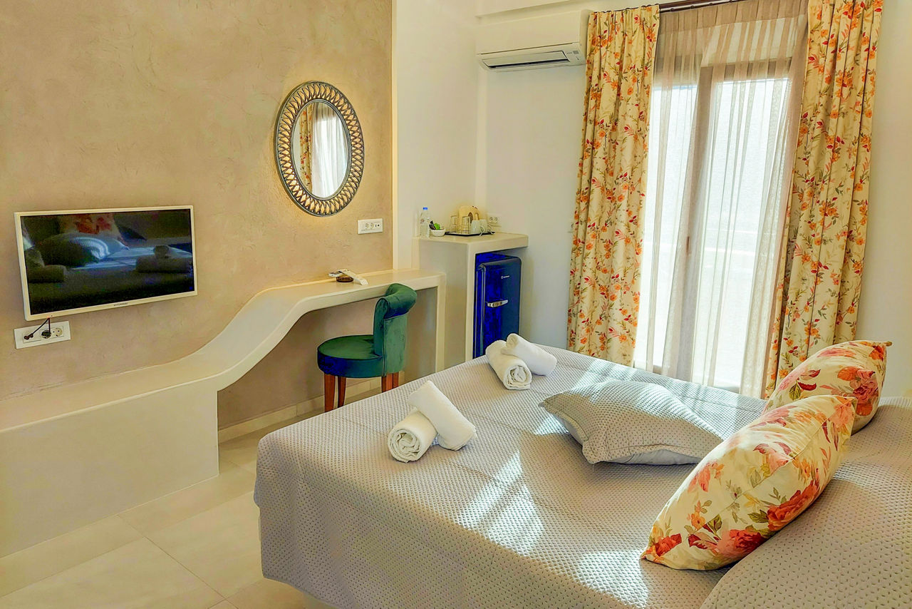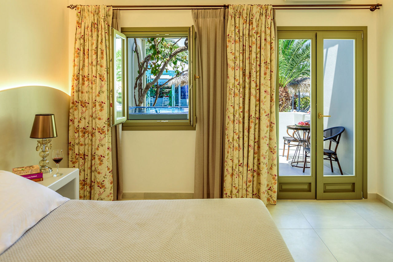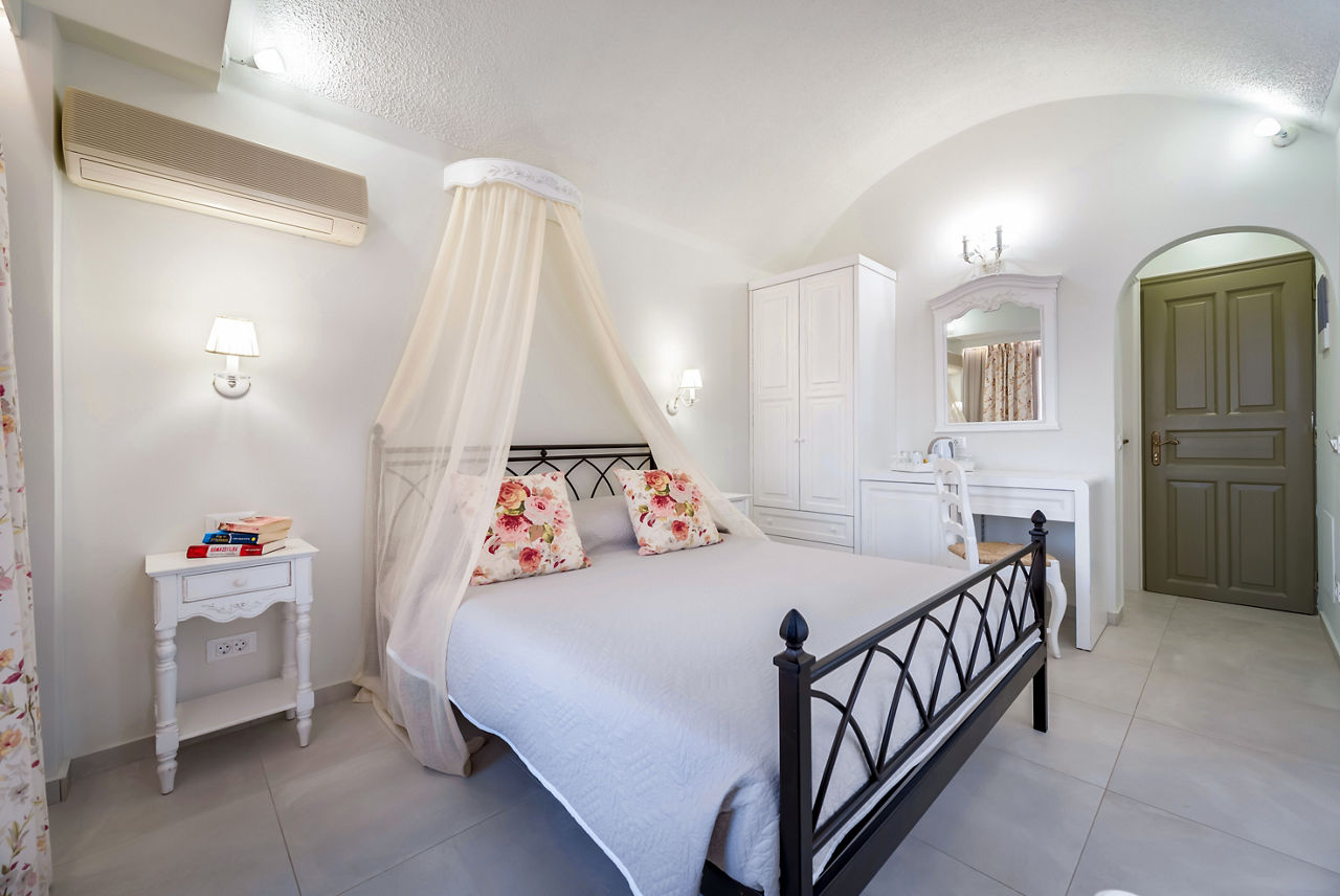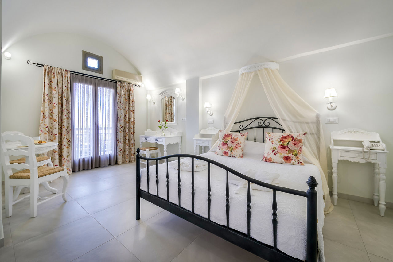 This family-run hotel makes you feel right at home during your stay. Decorated in true Santorini style, with whitewashed walls and pops of blue everywhere you turn, the charm of Zephyros Hotel Santorini is undeniable. Relax in the delightfully decorated, spacious rooms in between trips to the peaceful pool area. The hotel is in the ideal location too, being only a short stroll from the bustling beachfront of Kamari, where shops and tavernas line the black sands. It’s also only a short trip to visit the historic site, Ancient Thera. Those looking for a charming, peaceful getaway to the picture-perfect Santorini will love it here.