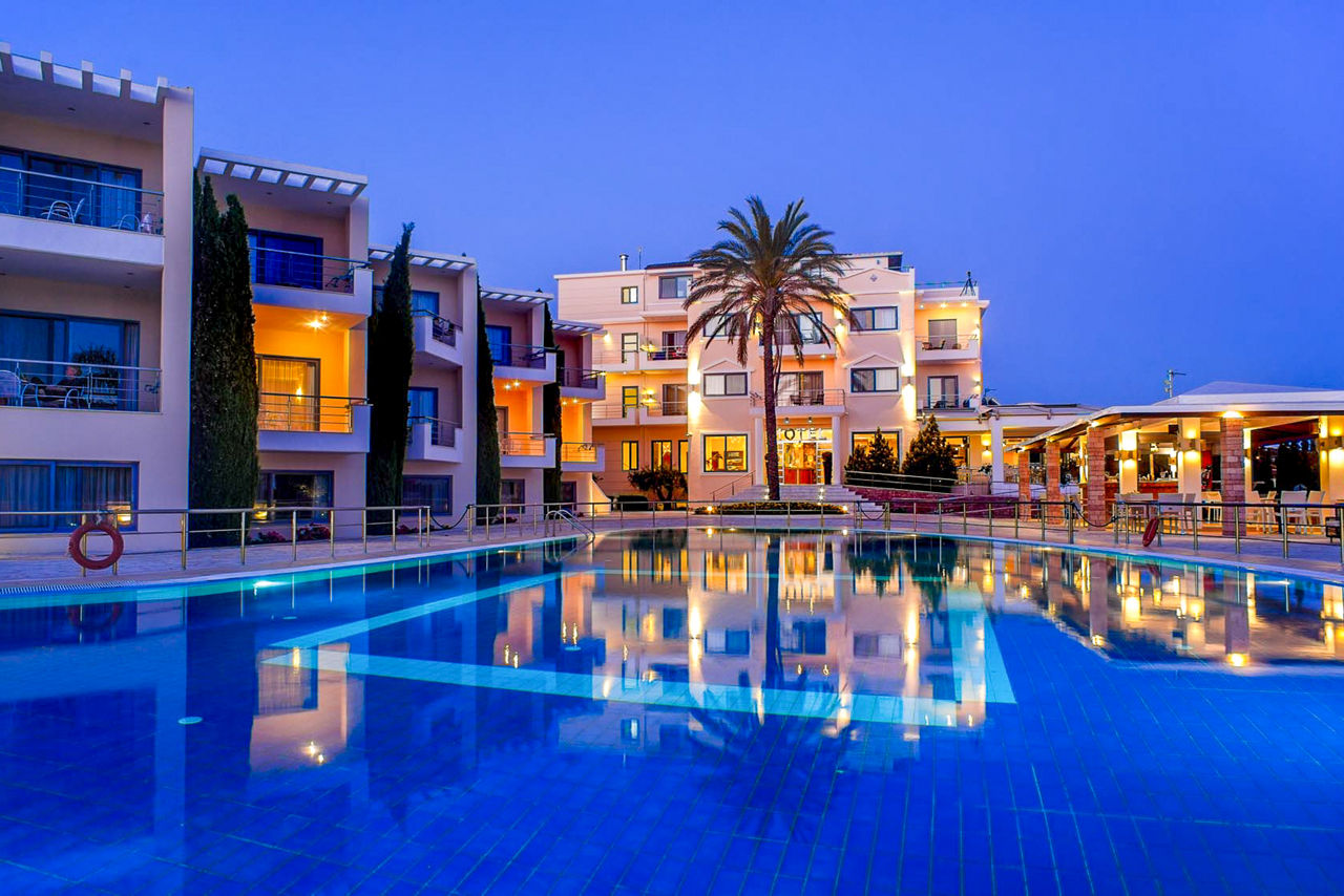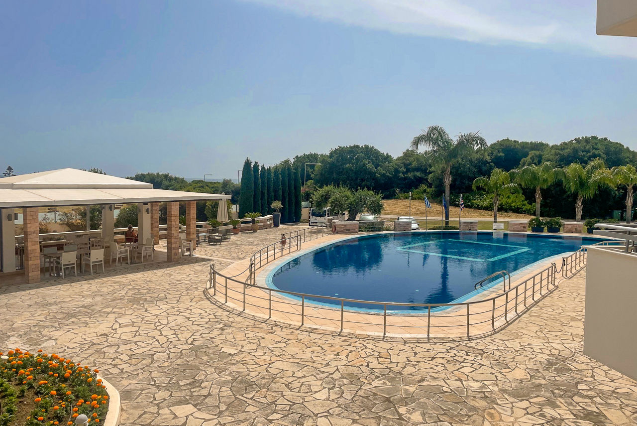 Located in Kanali, a captivating coastal area along the western shores of Greece, you’ll find the Ionian Theoxenia. In ancient Greek mythology, Theoxenia is a form of hospitality, so with this in the name, it’s no surprise that this hotel welcomes it’s guests with open arms! There’s a spacious pool area, with a bar beside it for the daytime refreshments, and the convenient Bed & Breakfast board basis will set you up ready for a day of exploring. With its tranquil ambiance and convenient location, Ionian Theoxenia provides a great place to stay when uncovering this pretty part of mainland Greece.