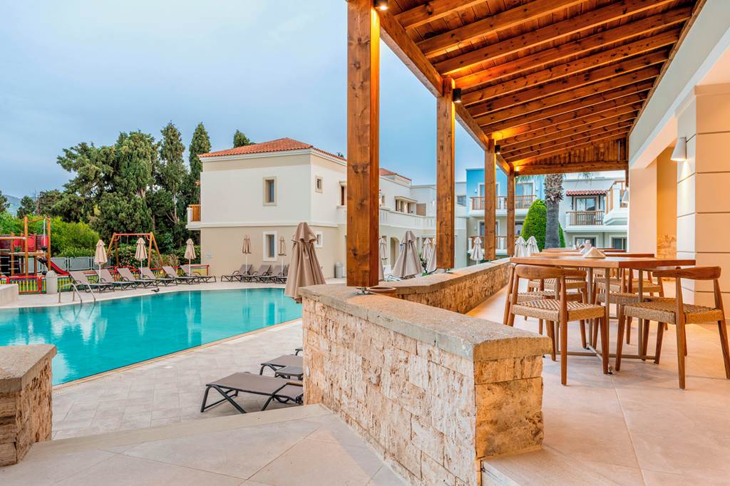 If a peaceful break in Kos sounds like your kind of holiday, you’ll love Aegean Houses. The spacious pool area is ideal for soaking up the gorgeous Grecian sunshine. For the kids, there’s a children’s pool and a playground with a slide and swings. Get ready to cook up a storm in your self-catering room, which has a good-sized kitchenette and all the appliances you’ll need to serve up something tasty. When you want a break from cooking, Kos Town is just a stone’s throw away, boasting plenty of traditional tavernas, souvenir shops and buzzy bars. Did we mention the beach is nearby too?