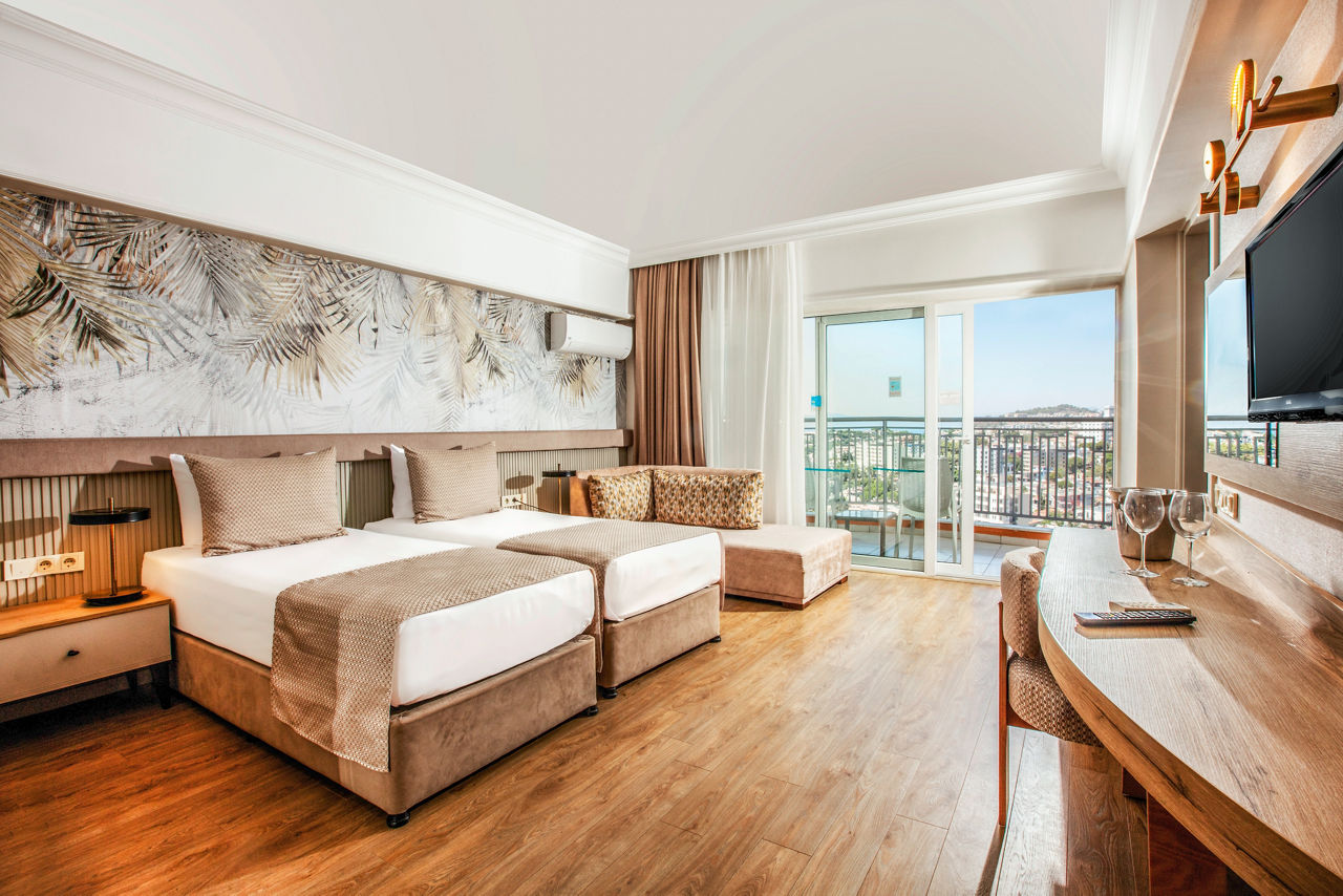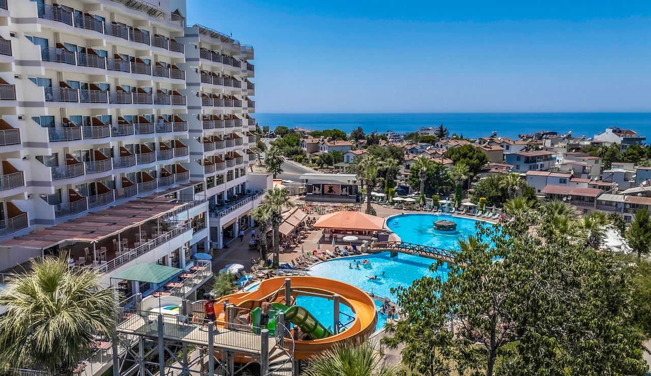 From families to friends and couples, everyone’s taken care of at Hotel Palmin. We’re talking a kids’ pool, children’s club, extensive menu of spa treatments and don’t forget the spacious pool area too! This Turkish treasure has all bases covered. Not too busy, not too quiet, with a beach and the nearest shops just a hop and a skip away... yep, Hotel Palmin has won the location lottery too. Fancy a bit of action? Get involved in the on-site classes or hit the gym to keep active. Evenings here mean karaoke, discos and other entertainment!