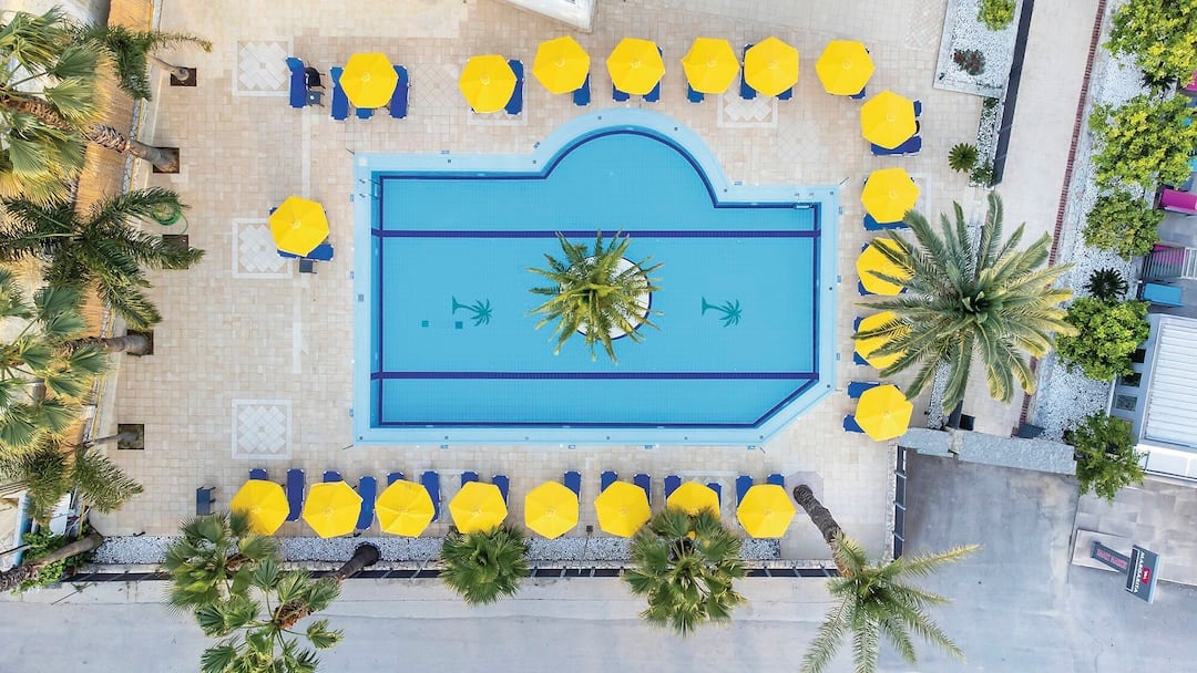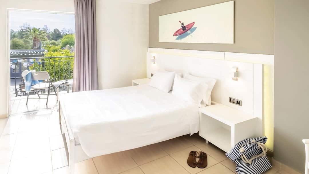 Rooms are bright and comfortable, each featuring air-conditioning, a mini-fridge, and a private balcony or terrace with views of the pool or gardens. Guests can unwind by the large outdoor pool, enjoy a drink at the poolside bar, or take a stroll through the hotel’s well-kept gardens.
