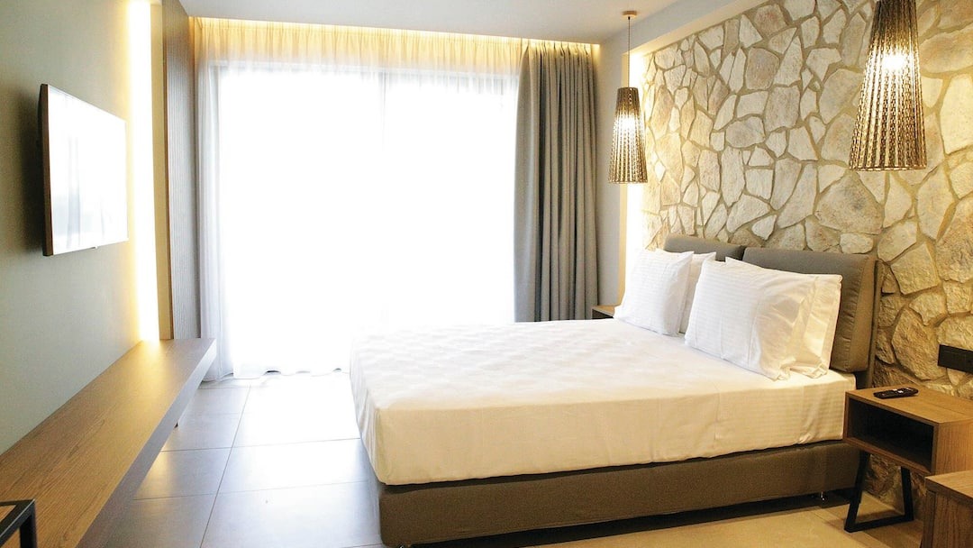 The on-site restaurant serves a variety of local and international dishes, with regular themed evenings during the summer months. With a friendly atmosphere and excellent location, this hotel is a popular choice for a laid-back escape in the Greek sunshine.