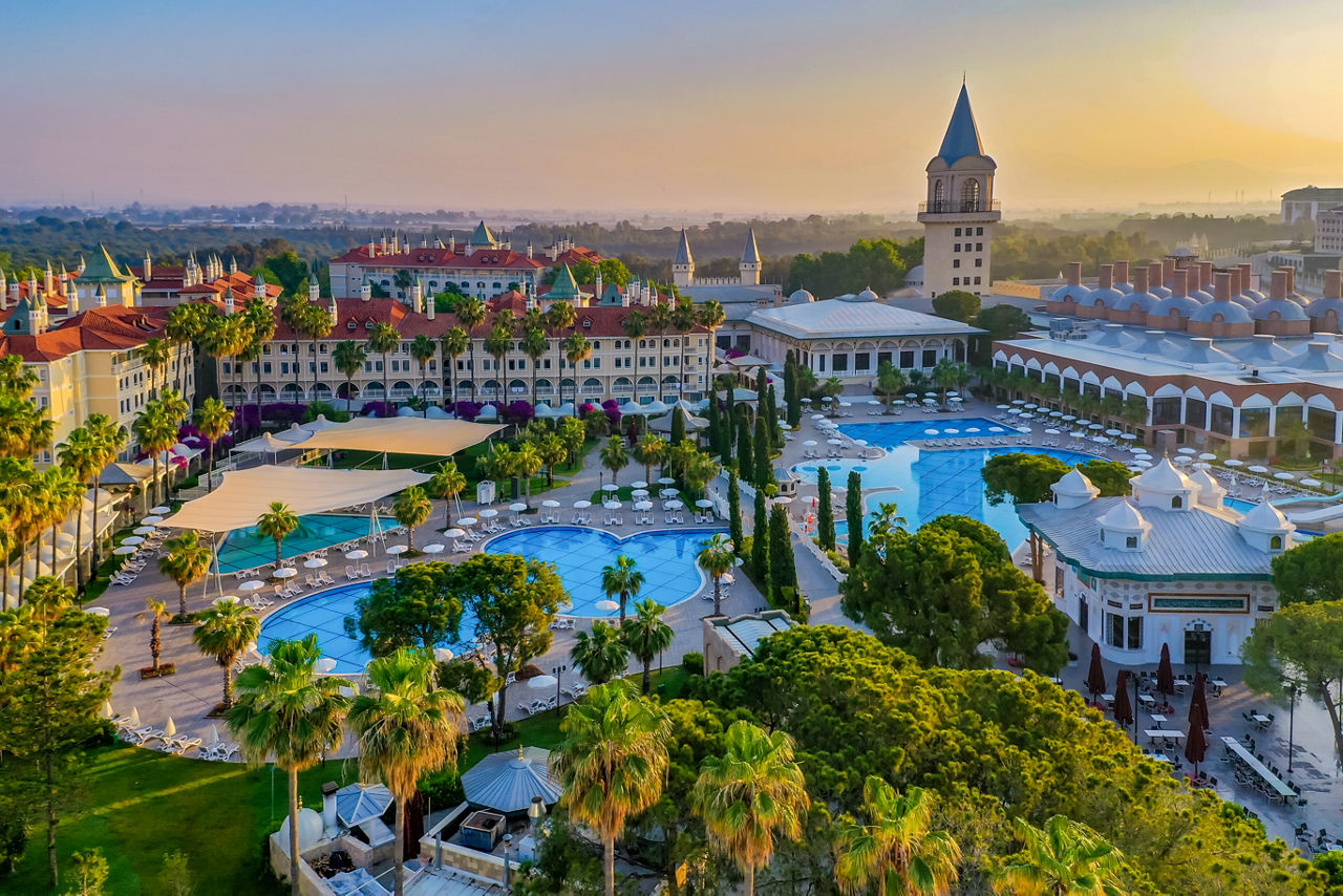 Inspired by the grandeur of Istanbul’s Topkapi Palace, this dreamy hotel adds a traditional Turkish twist to your stay. Regal touches run throughout – from the elegant guestrooms to the five exceptional restaurants and no fewer than 14 stylish bars. Outside, three shimmering pools and a fun-filled aqua park will keep both kids and grown-ups smiling all holiday long. Among Swandor Topkapi Palace’s many highlights are its fantastic children’s club, stunning beachfront location and All Inclusive board as standard. Feeling active? Hit the well-equipped gym – or unwind completely in the serene spa. However you spend your days, this is Turkish luxury fit for royalty.
