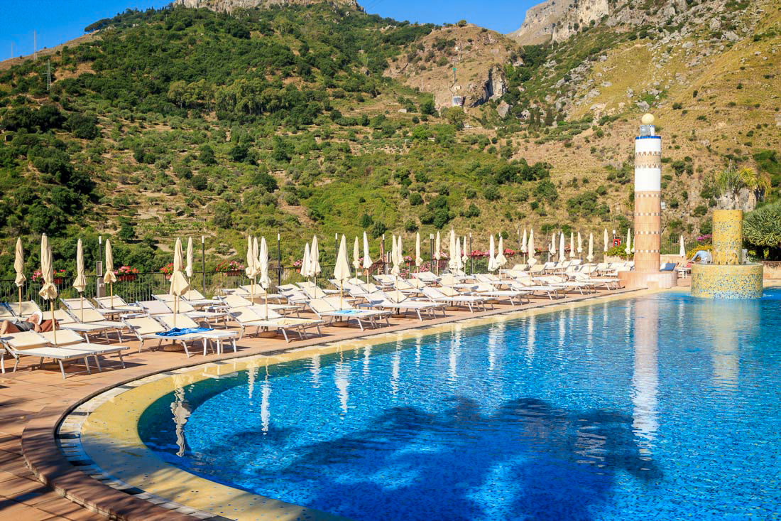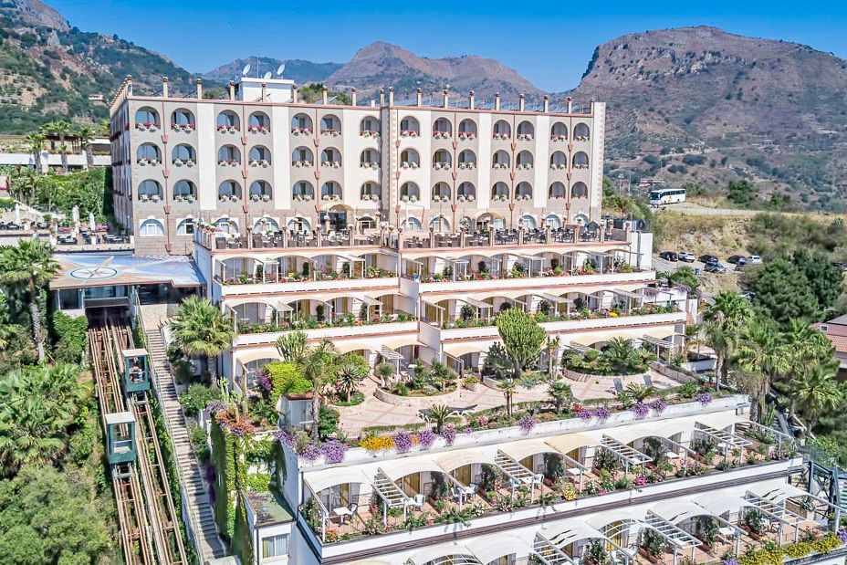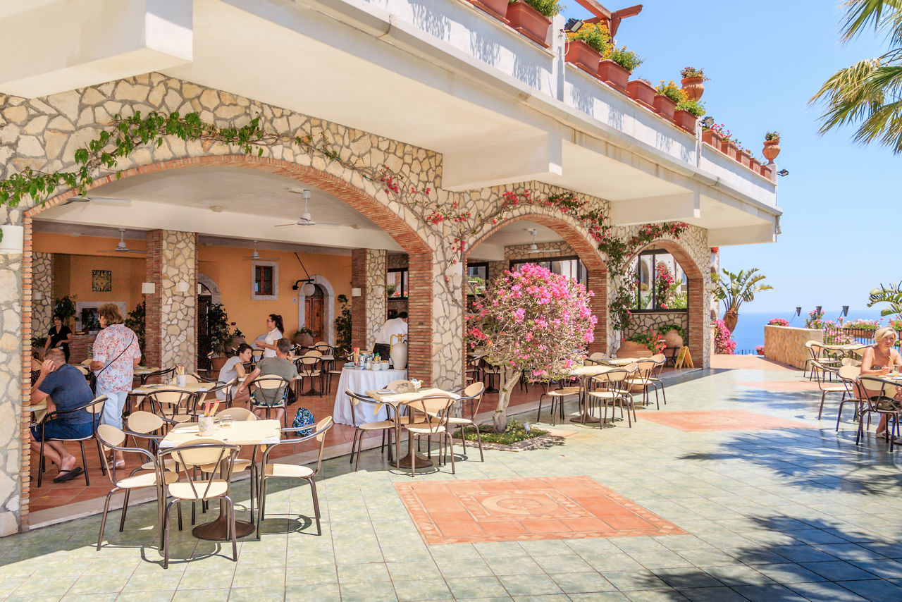 With stunning views from all over the hotel, the Hotel Olimpo Le Terrazze offers a relaxing break in a breathtaking hilltop setting. Enjoy the spacious outdoor and indoor pool areas and wellness centre during the day, and tuck into delicious food and drink at one of the hotel's restaurants in the evening. Why not take the hotel's lift down to the beach, or just a short walk away is the popular resort of Letojanni with its long beach promenade, pretty piazzas, shops, bars and restaurants.
