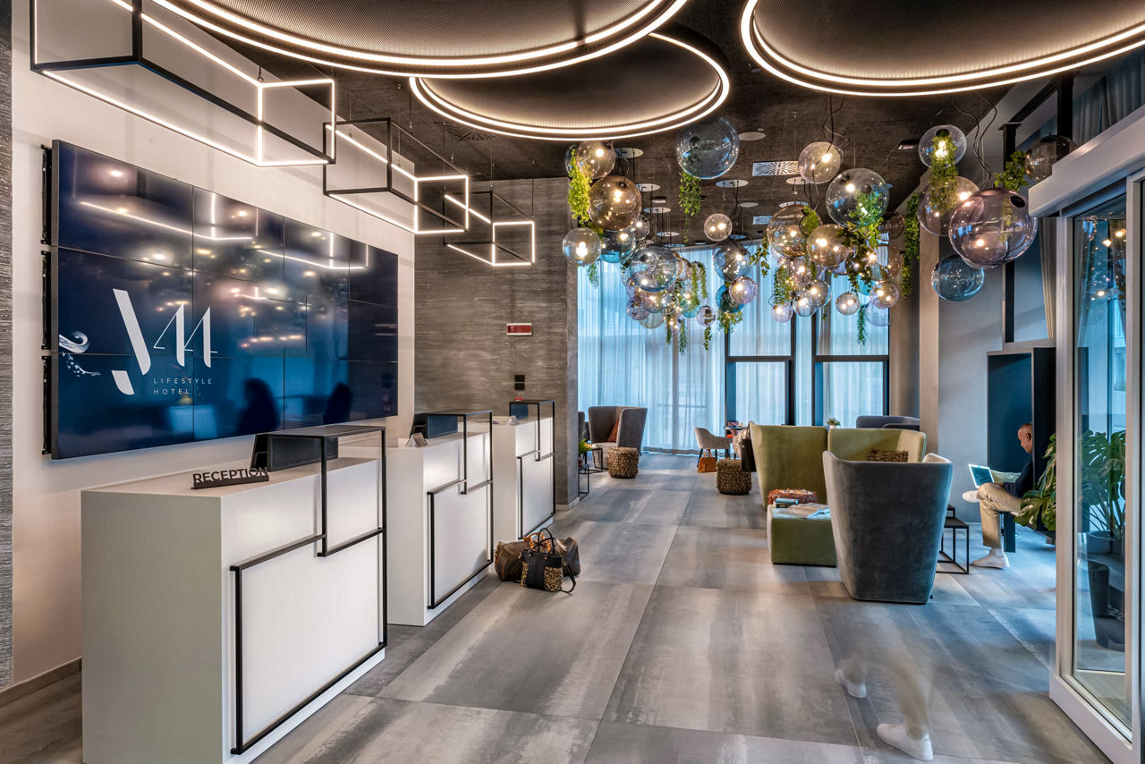 Located in a prime central location in Lido di Jesolo, J44 Lifestyle Hotel is perfect for the contemporary traveller. Modern in style and with advanced technology solutions throughout, great attention to detail has been taken to give guests the best experience. The hotel's Jola restaurant is sure to get your taste buds tingling and when you've finished dining, head up to the 6th floor where you'll find the American bar. Serving cool cocktails, panoramic views and a trendy vibe, this is the place to be. The resort centre is just moments away and the hotels reserved section of blue flag beach is also a short stroll away.