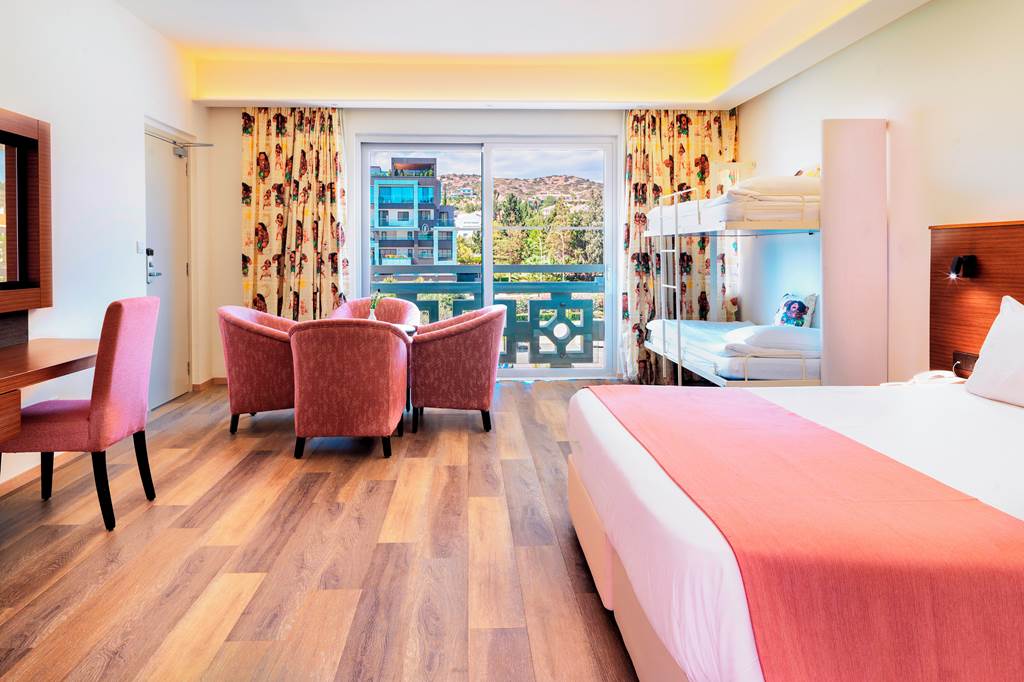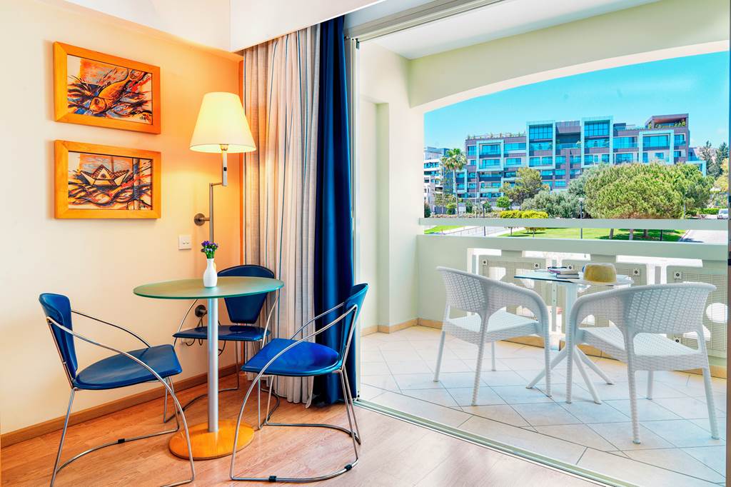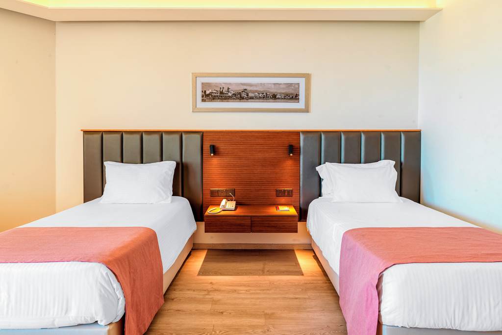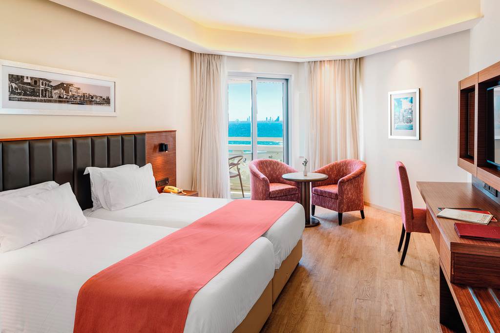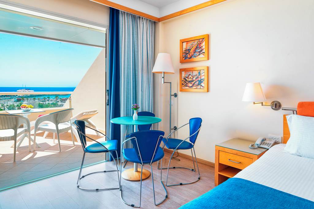Twin rooms sleep up to 3 adults or 2 adults and 1 child and have a full bathroom, hairdryer, satellite TV, computer games console, tea and coffee making facilities, air-conditioning and a balcony or terrace. Sea view, Marina view rooms and Executive rooms are also available. Executive rooms are larger in size and are located in a separate wing. Please note - certain twin rooms do NOT have a balcony.