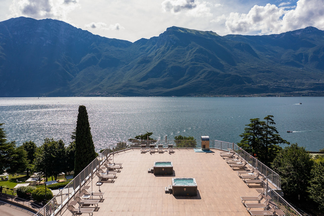 Surrounded by a large garden in a central location, the hotel has direct access to the majestic Lake Garda. The rooftop terrace enjoys stunning views over the lake for guests to sit back and admire. Modern, comfortable guest rooms and the lovely whirlpools provide relaxation for guests while sun worshipers and water sport lovers can enjoy the lake with windsurfing and sailing a popular pastime here.