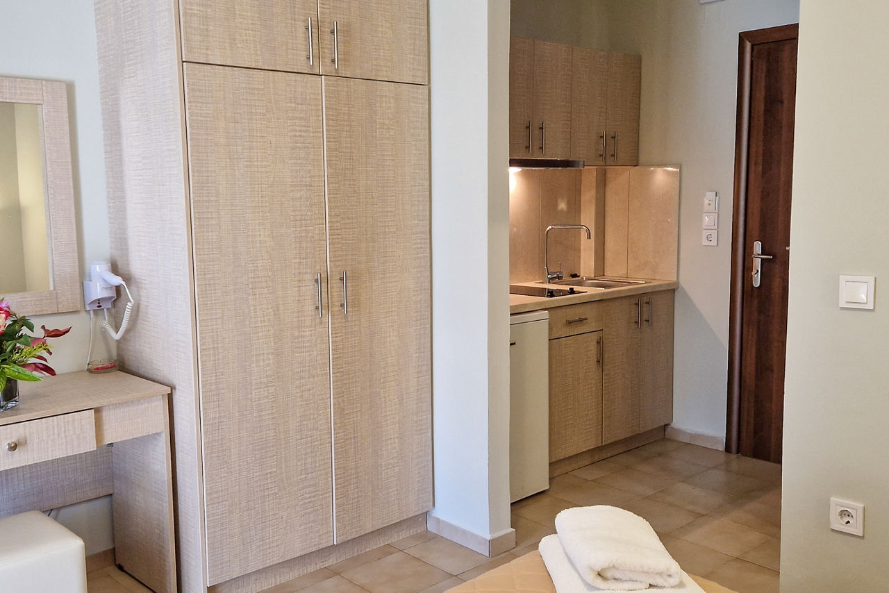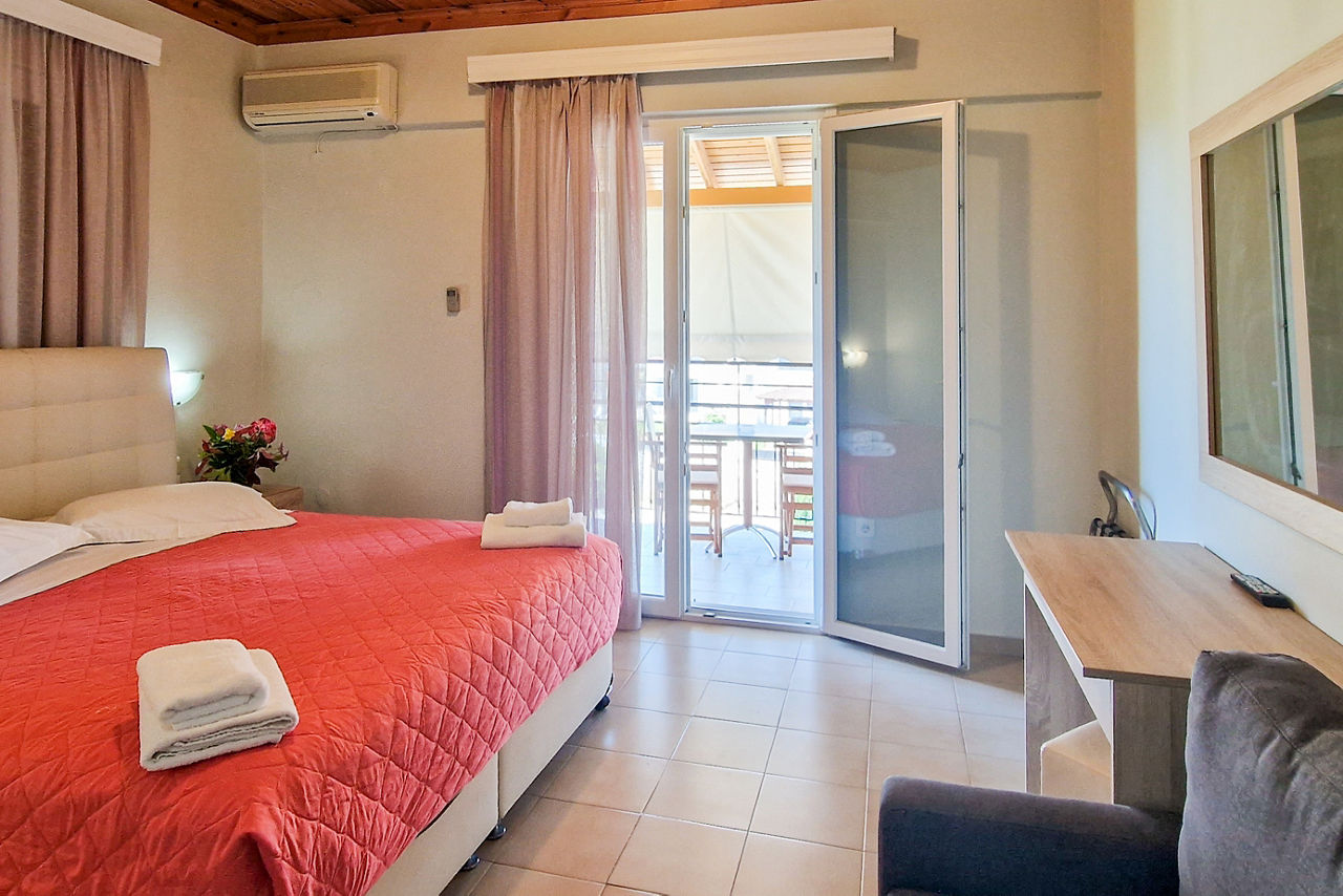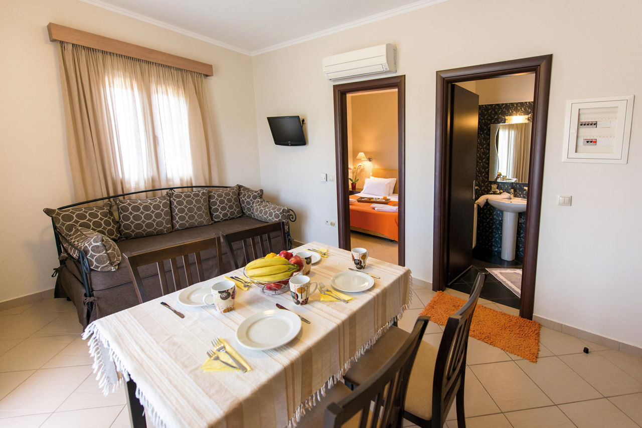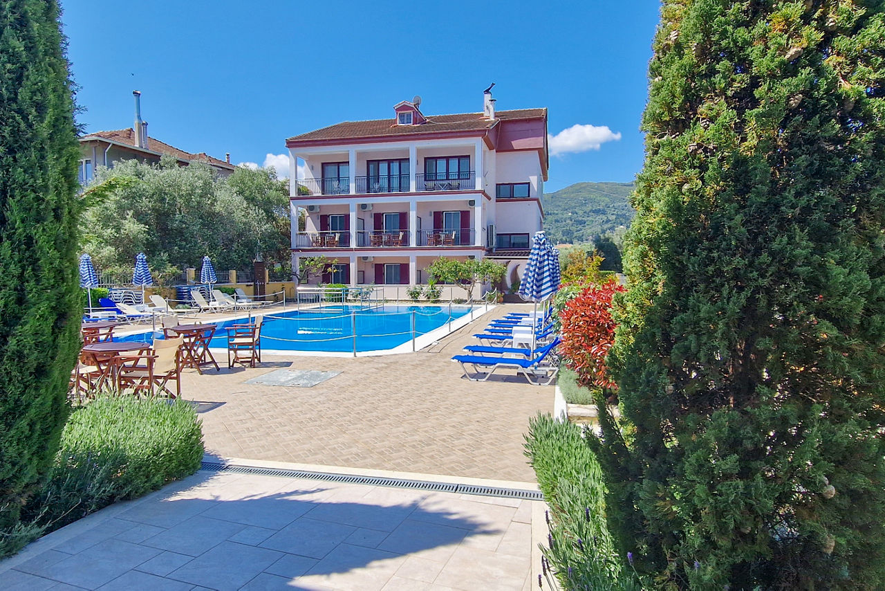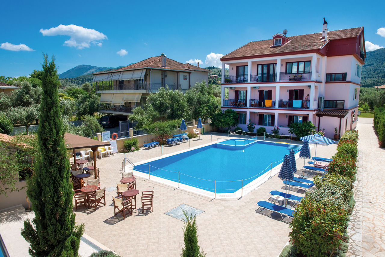 Named after one of the owners Christina, it's no surprise that Christina Studios & Apartments are a family-run gem. From the moment you enter this charming hotel, you can expect a warm welcome and friendly service. The pool area is roomy and has a calm feel, perfect for those slow days. Self Catering comes as standard here, or why not upgrade to Bed & Breakfast and enjoy al fresco breakfasts poolside? The traditional rooms come with small kitchenettes, so you can take care of mealtimes if you fancy, or take a short stroll into the lovely village of Lygia, with its authentic tavernas. If you're wanting to uncover what Lefkas has to offer, this is a pretty good place to do it from!