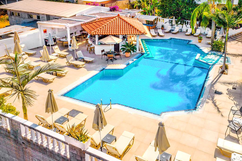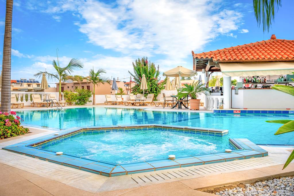 Looking for a modern hotel with a swim-up bar, outdoor whirlpool + a prime location? Done, done, done + then some. Malia Mare is a tranquil hub by day, then the atmosphere cranks up in the evenings as Crete’s party capital springs to life.
