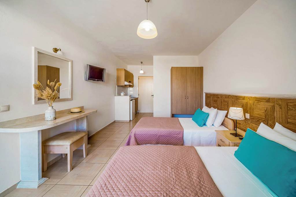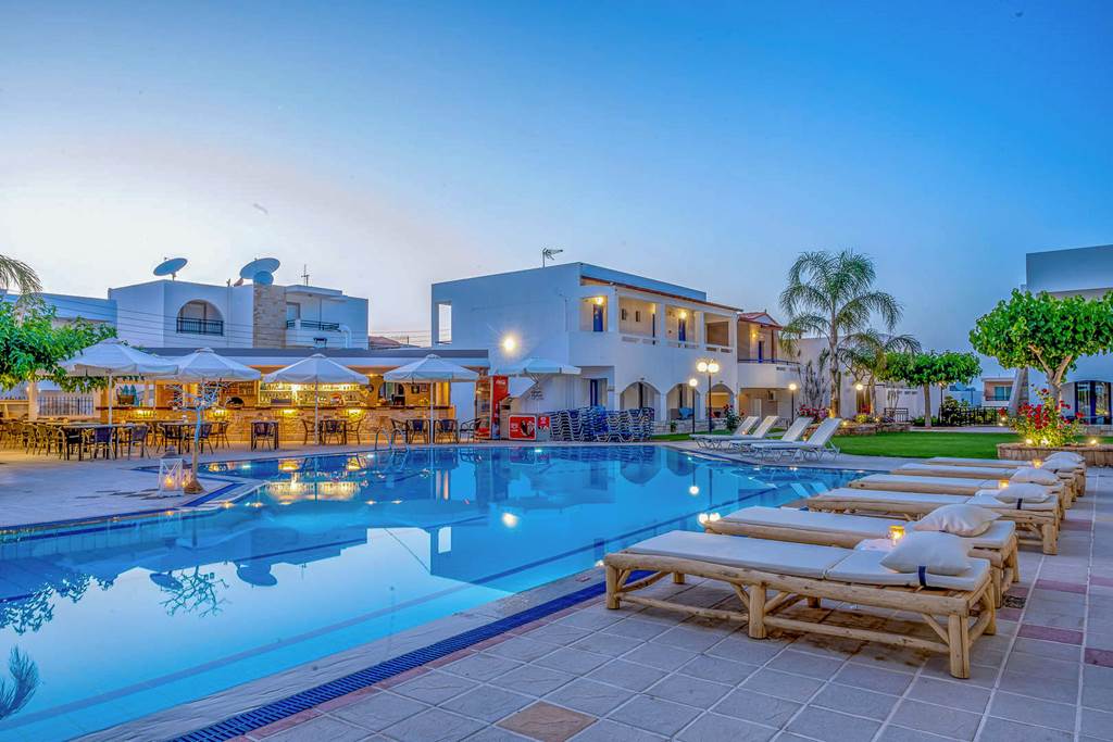These family-run studios have a friendly and relaxed atmosphere and are set amidst lovely gardens in a quiet location of Malia, yet within easy walking distance of the bars and clubs on the main strip. The studios are bright and spacious and the pool enjoys views of the mountains and olive groves that surround the area.