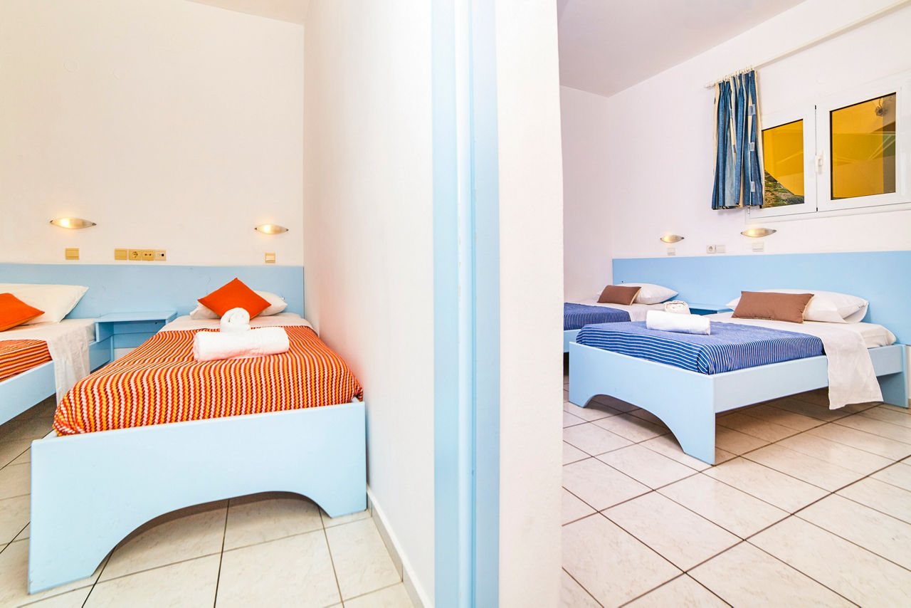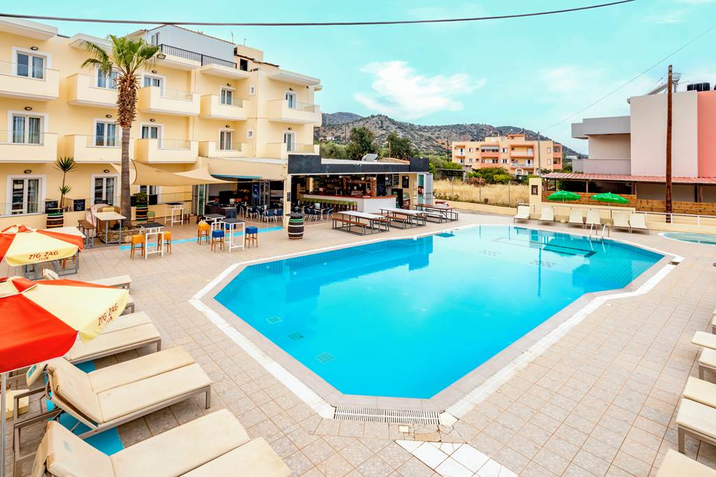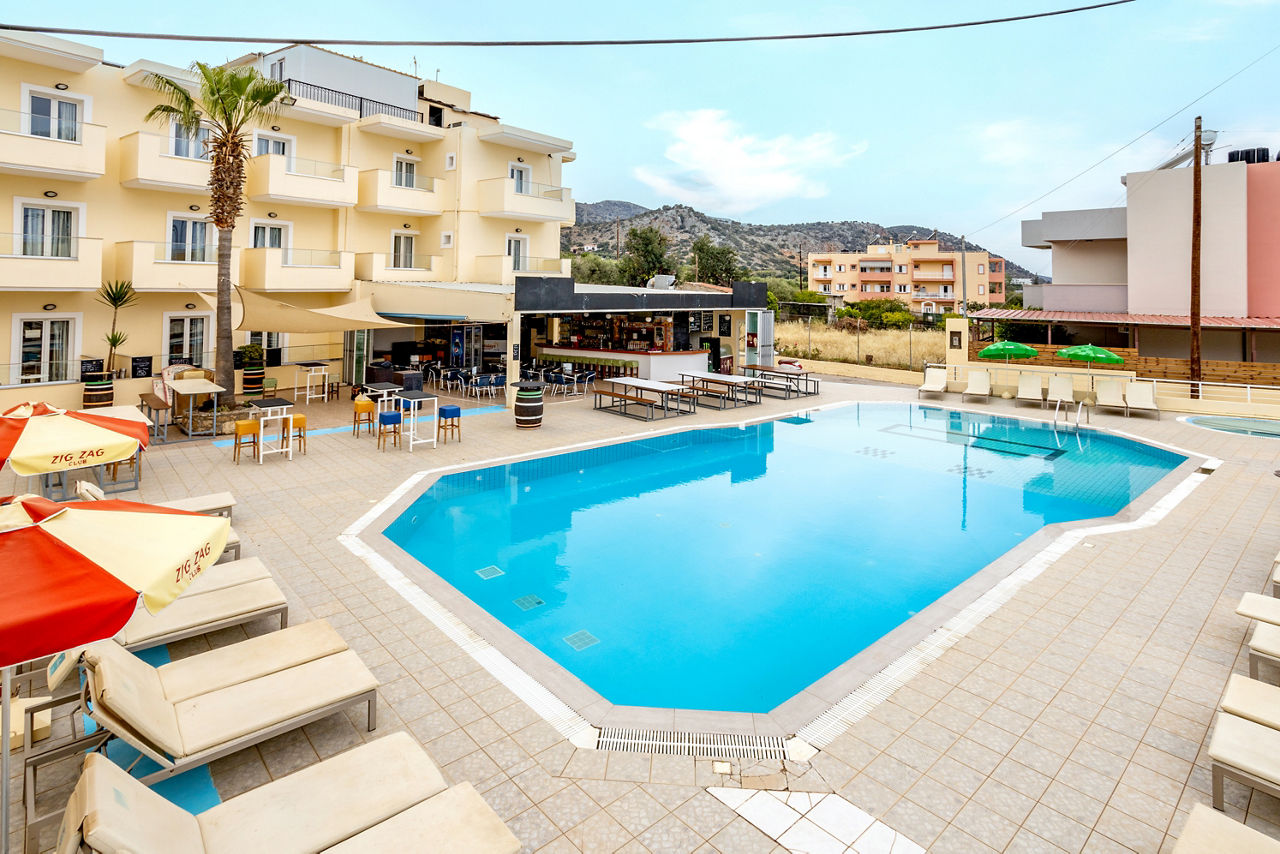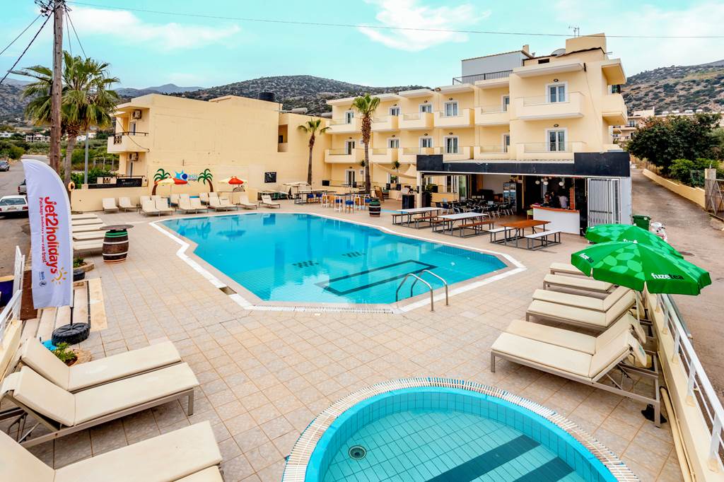 Village Oasis Malia is a no-frills but all-the-thrills hotel that’s ideal for a group getaway. It’s tucked between shops, restaurants, bars and clubs, and you’ve got Malia’s neon-lit nightlife close by. The pool area’s perfect for those lazy R+R days too.