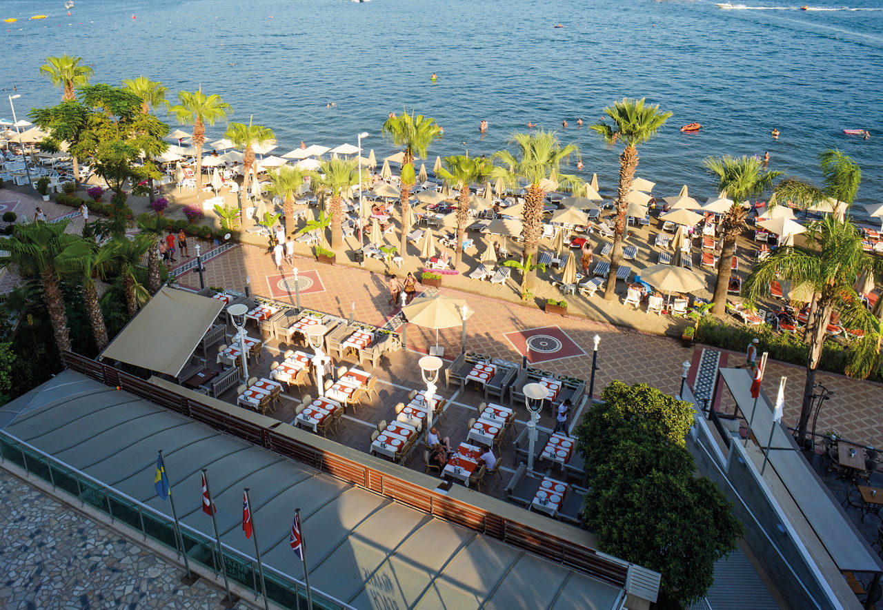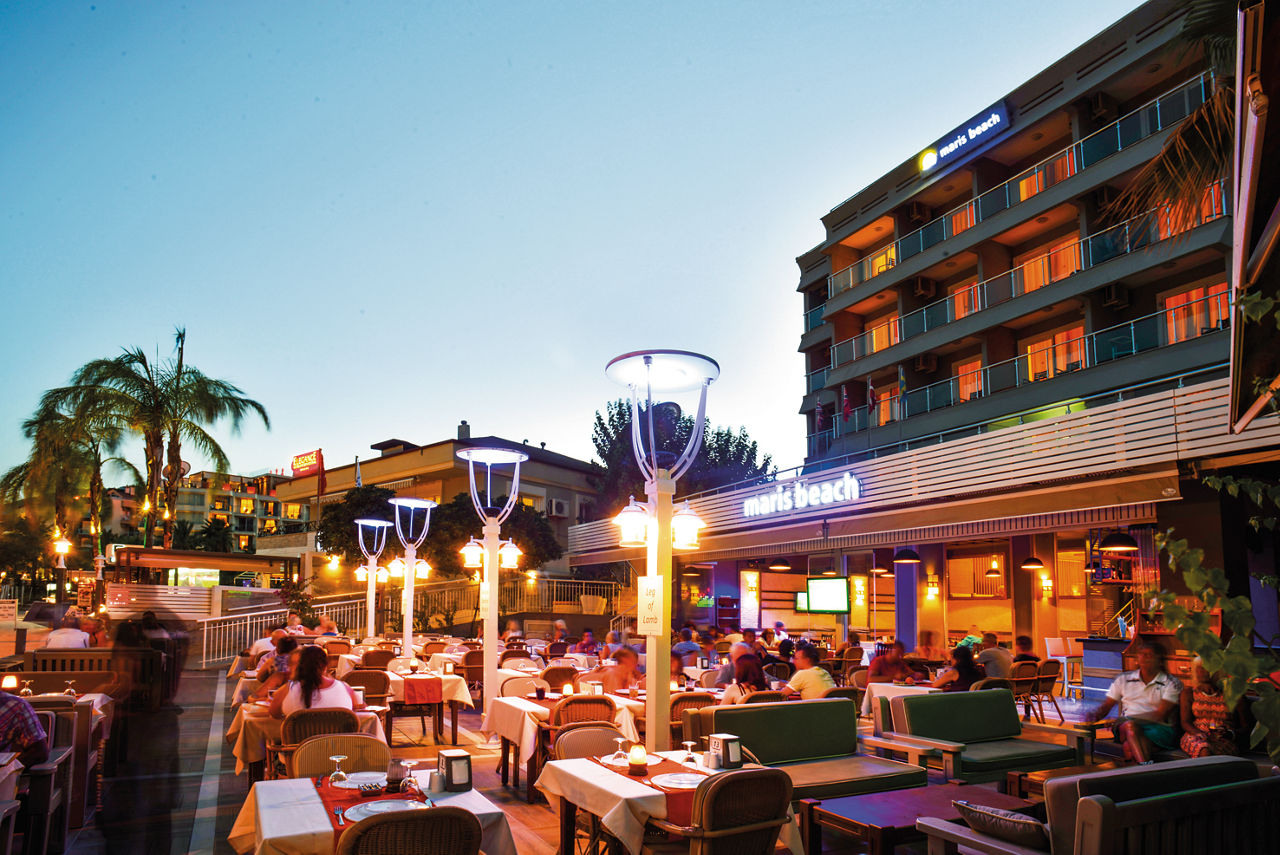 The popular Maris Beach Hotel is situated on a private sandy beach, providing picturesque views of Marmaris Bay and its harbour. Feel relaxed in your spacious and modern room or as you lounge on the beach soaking up the sun. The location also means you will dine on the beachfront and enjoy the sounds of the sea along with breakfast for the perfect start to the day. Journey into Marmaris resort centre to make the most of the shopping opportunities and also spend your evenings here with a range of bars and entertainment that provide a fun-filled atmosphere. For a holiday where stepping out onto the beach is part of your daily routine, the Maris Beach Hotel is the perfect choice.