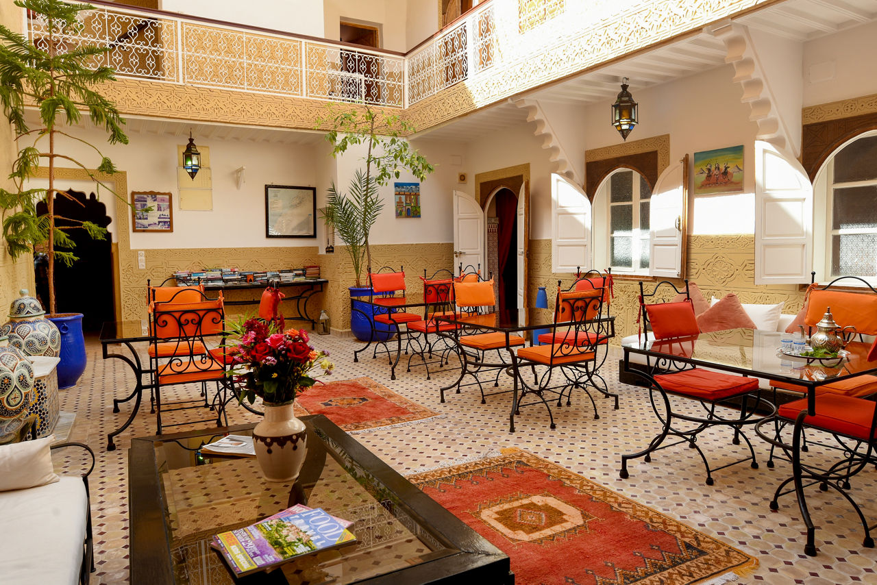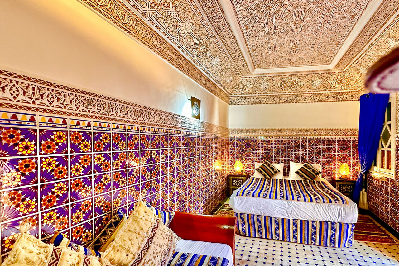 Welcome to the charming Riad Shaden, showcasing its unique take on a traditional Moroccan riad. Each room offers its own individual favour of the countries historic culture, and bright colours and beautiful patters abound, all leading into a picture perfect courtyard. Throw in a delightful roof terrace with comfy sun loungers and a great location in the east of the Medina and you have found your relaxing place in this living historic city.